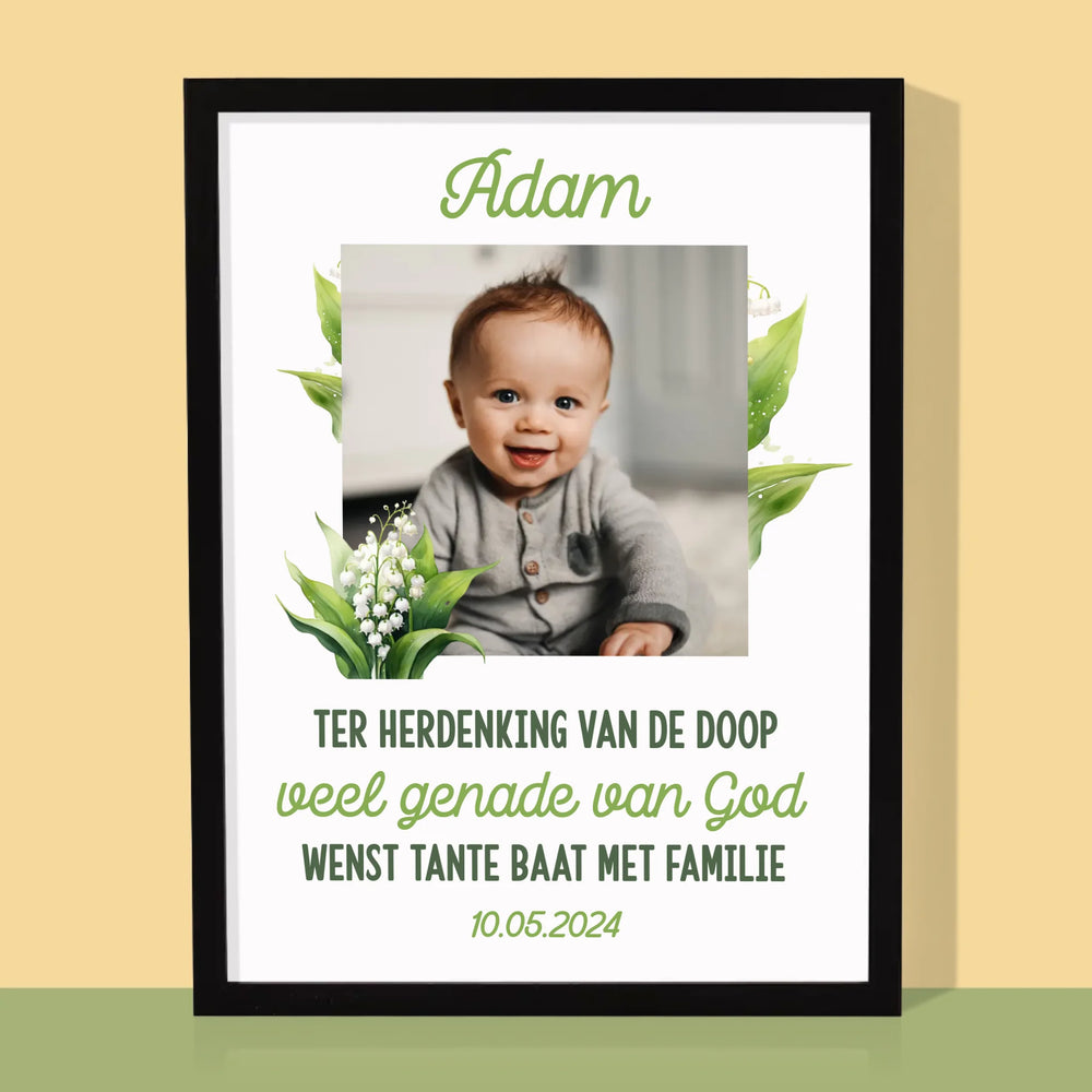 Foto En Handtekening: Ter Herdenking Van De Doop, Lelietje-Van-Dalen - Afdruk met frame