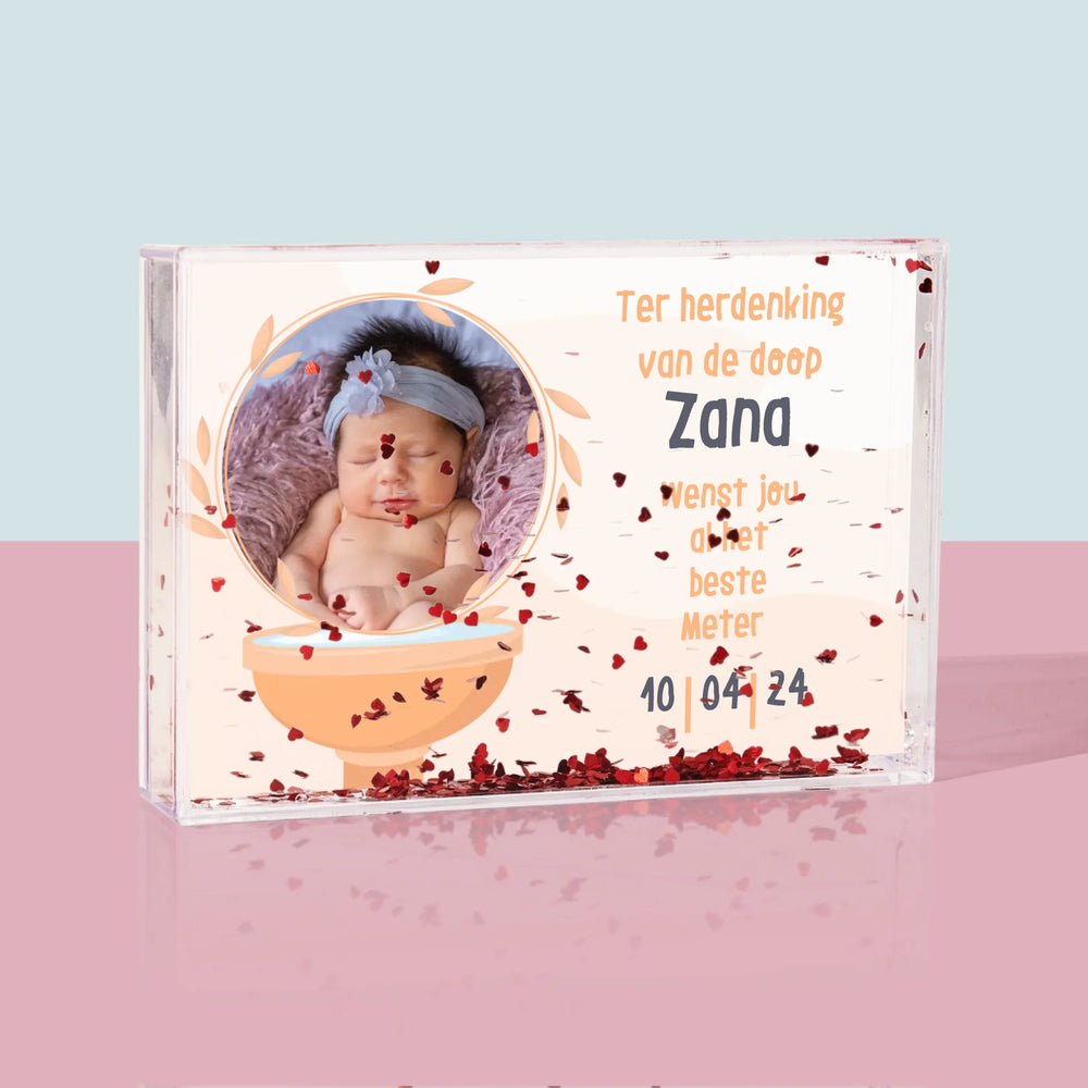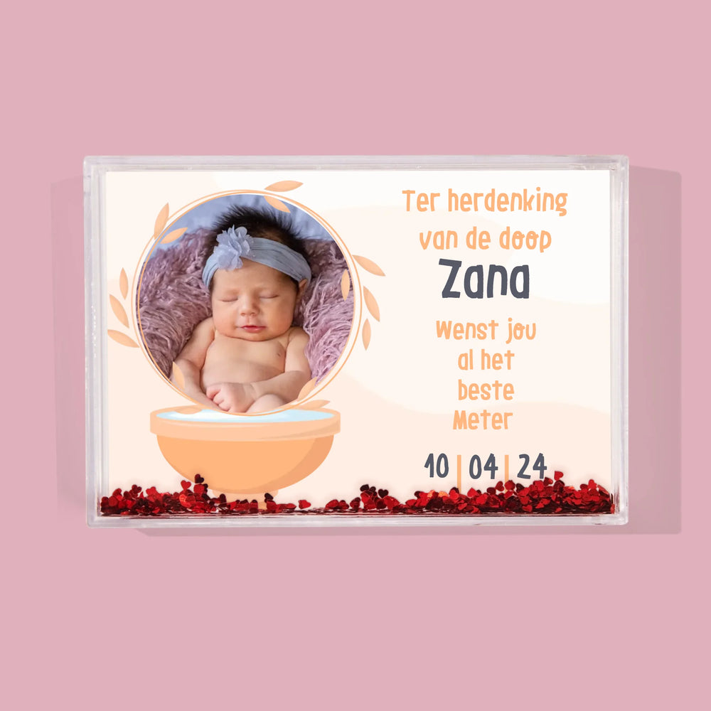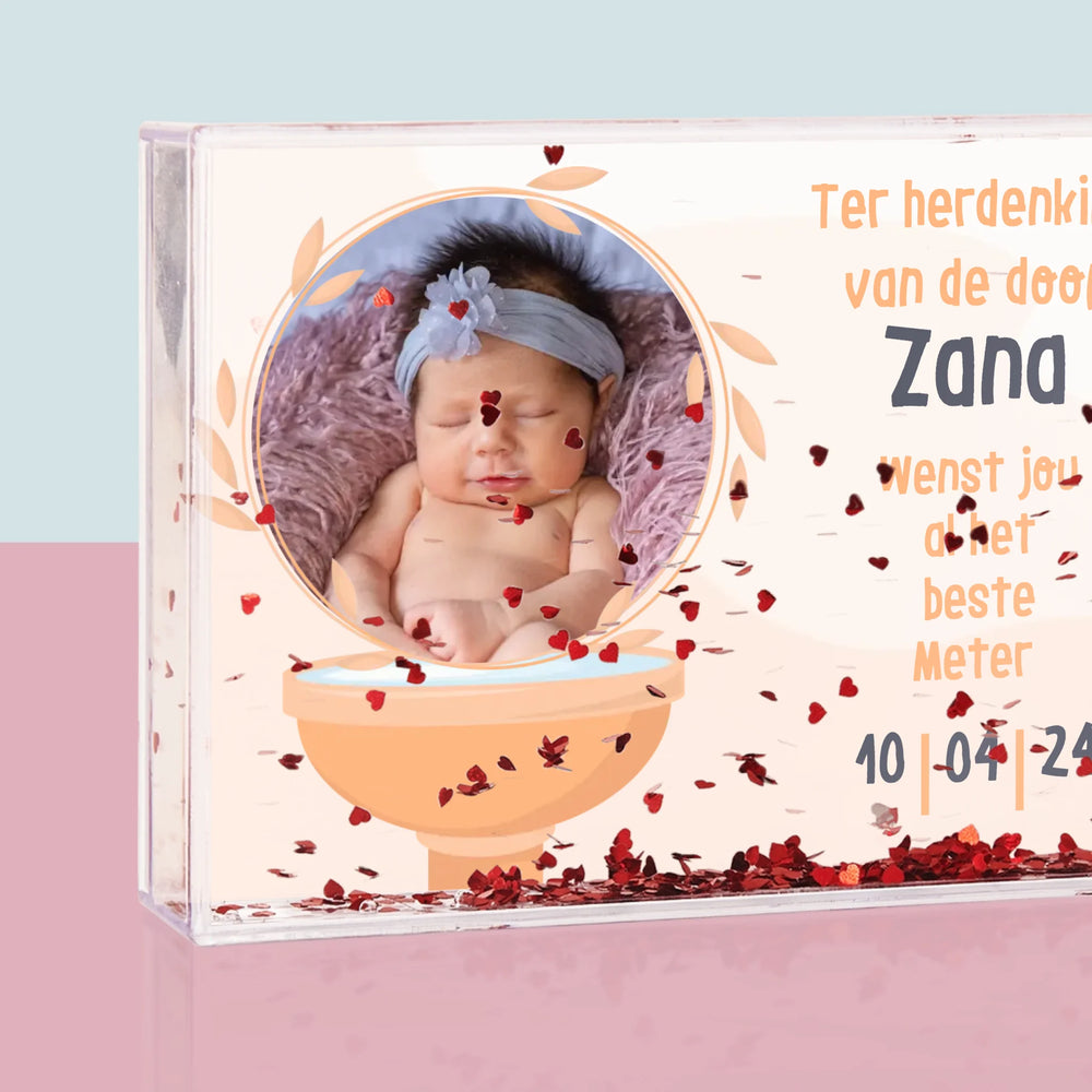 Gemaakt van transparant plastic, van binnen gevuld met water en confetti in de vorm van hartvormige bloemblaadjes!