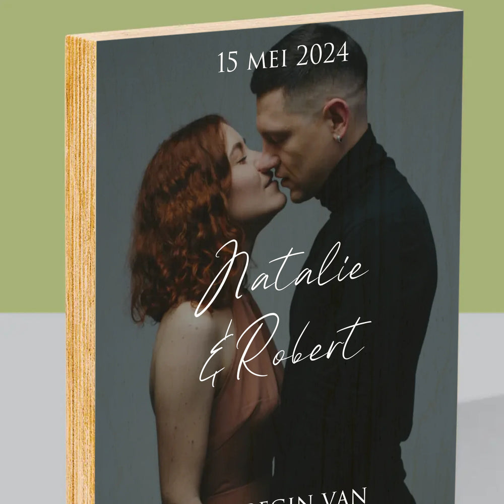 Foto En Handtekening: Trouwfoto Met Wensen - Afdruk op hout
