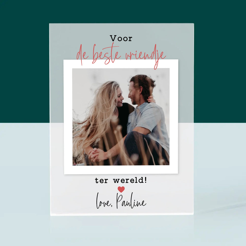 Foto En Handtekening: Voor De Beste Vriendje - Acryl blok - Verticaal