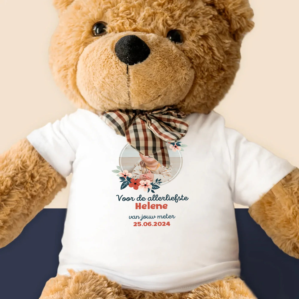 Grote knuffelbeer met jouw gekozen ontwerp.