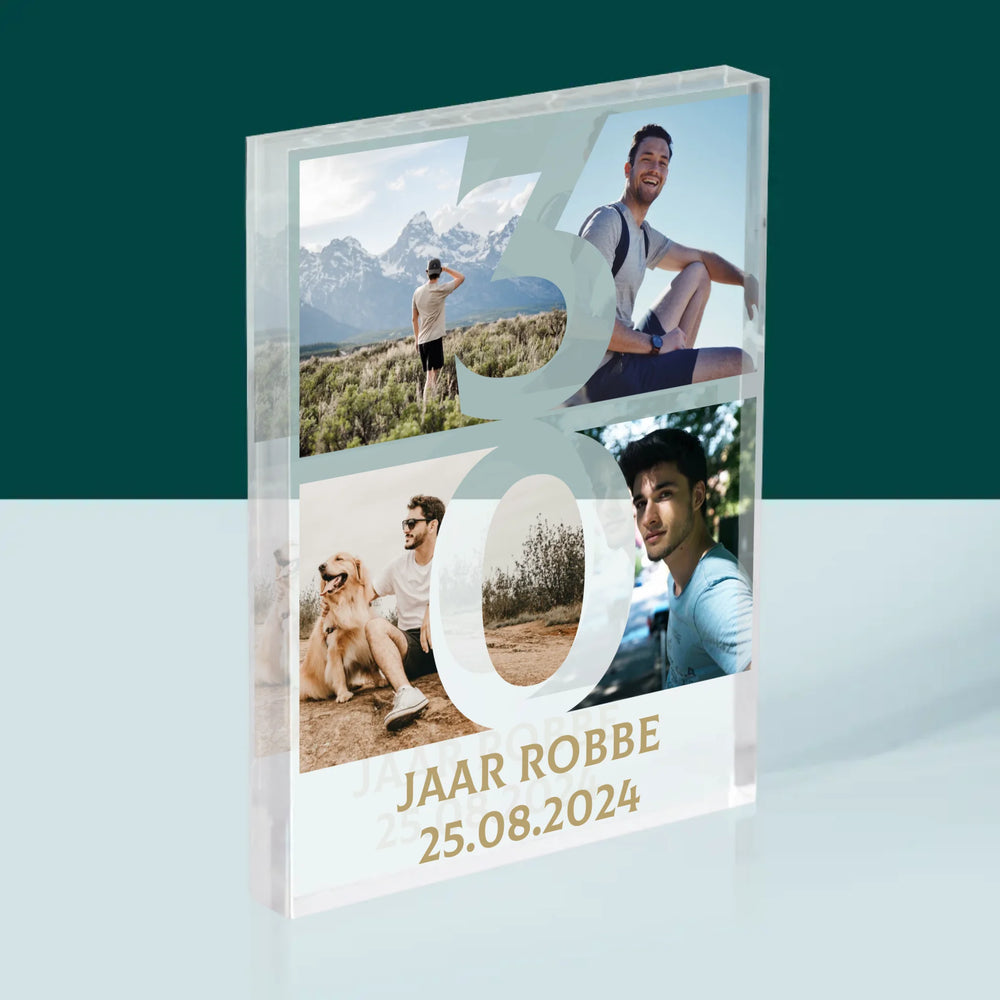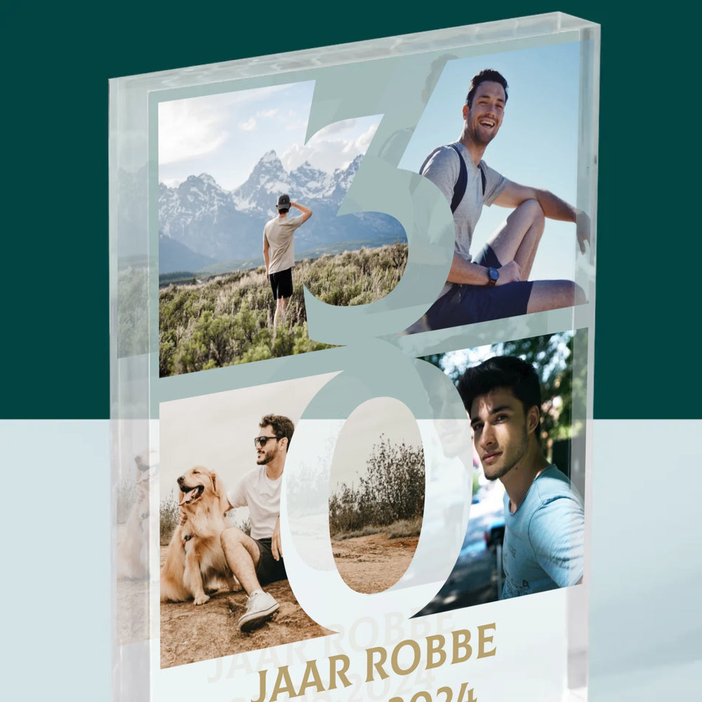 Fotocollage: 30 Jaar, Cijfer Foto'S - Acryl blok - Verticaal