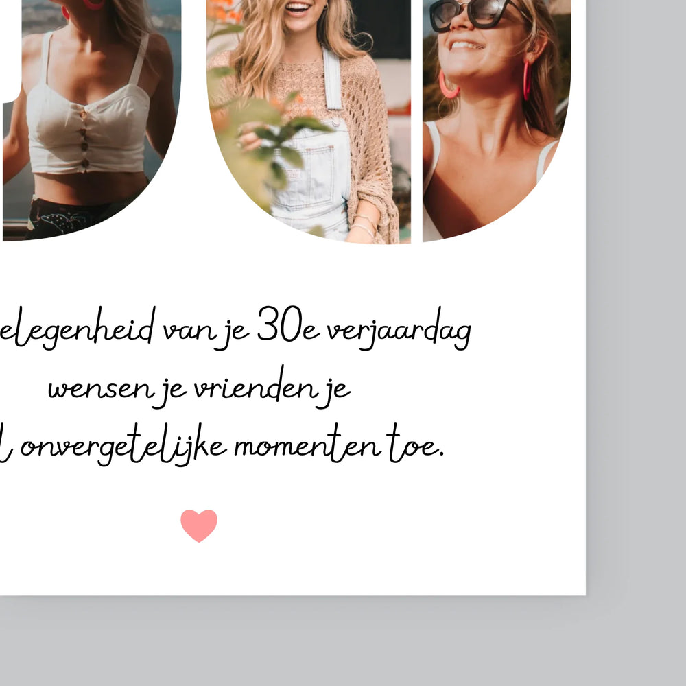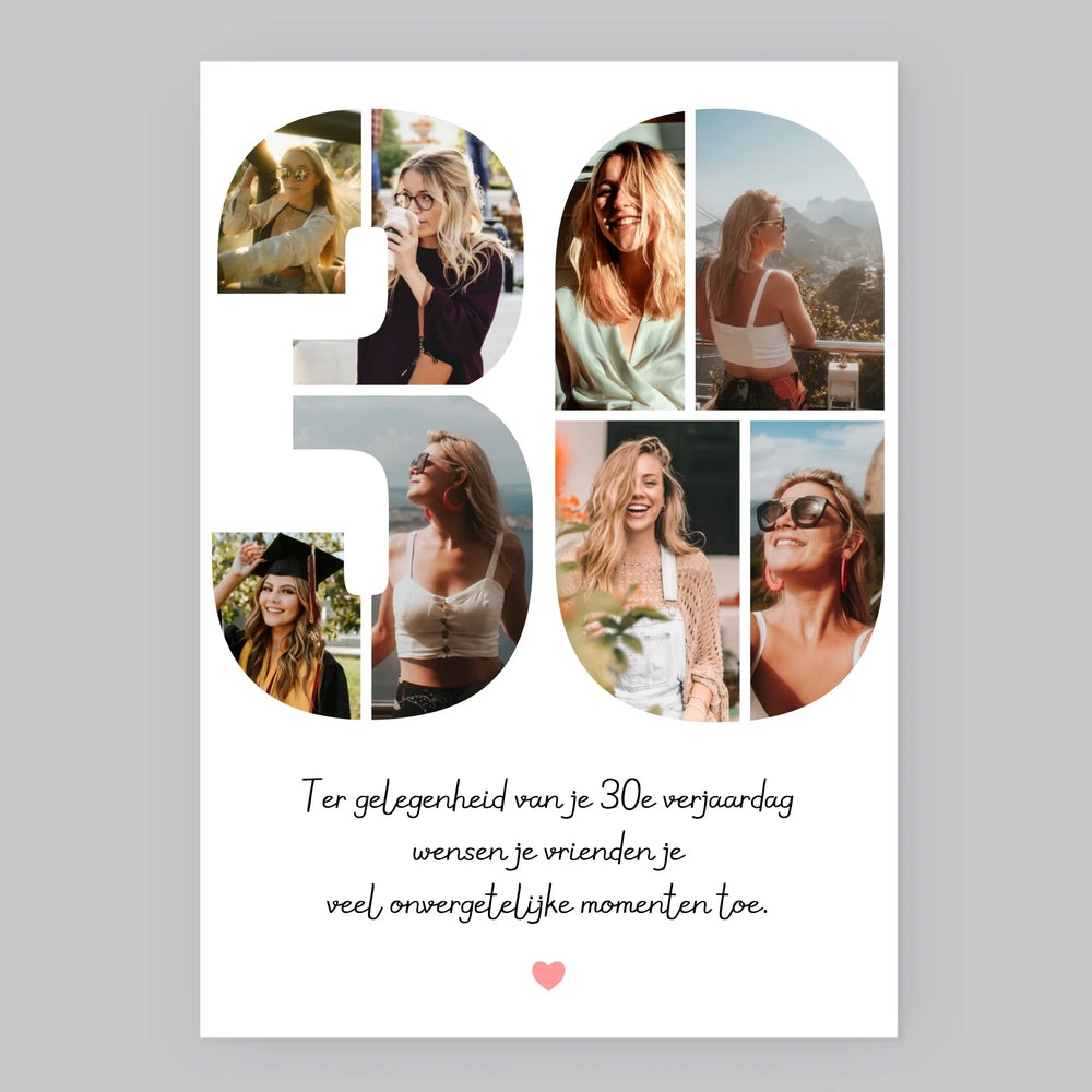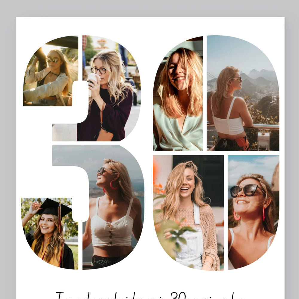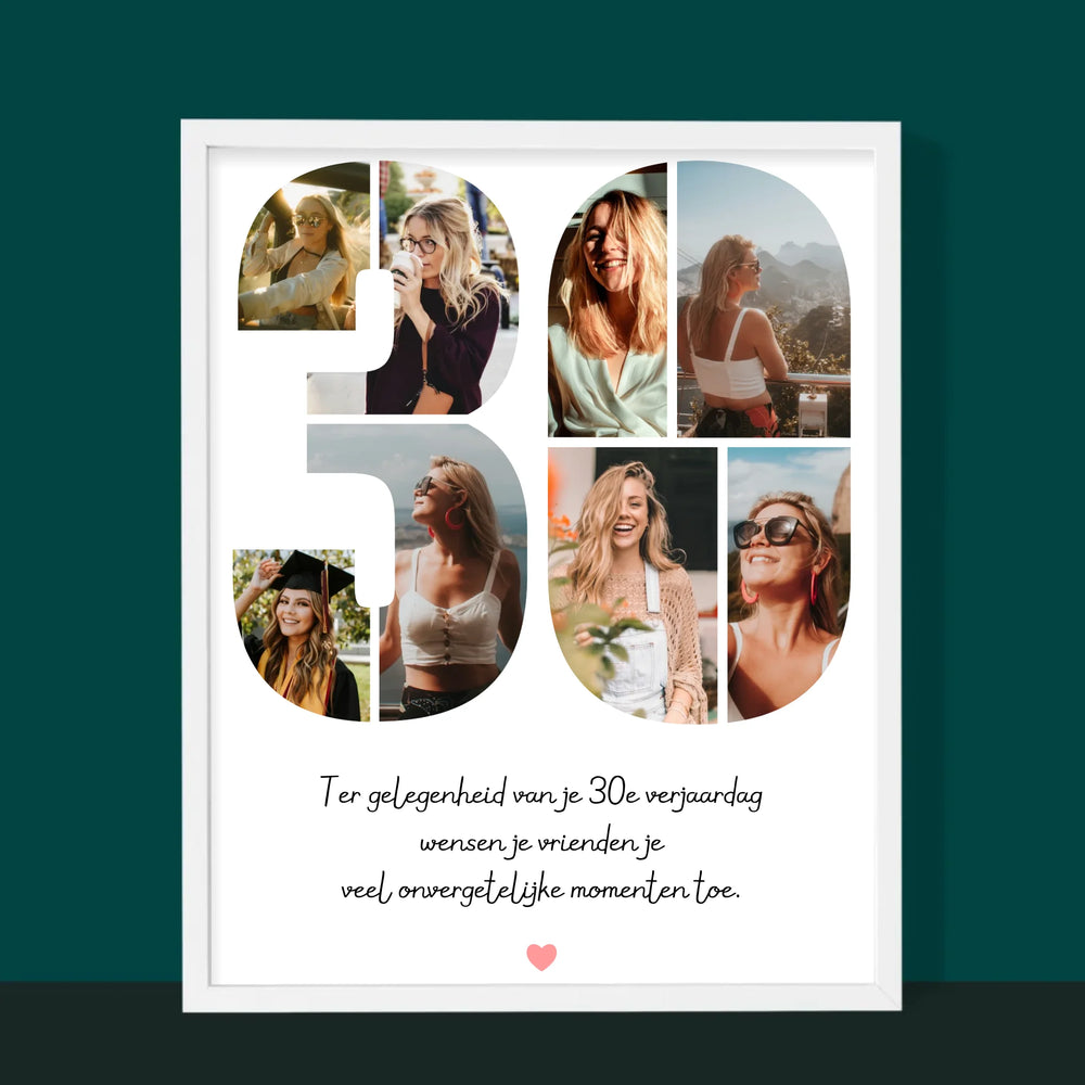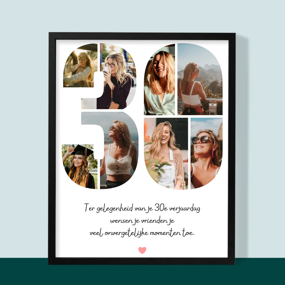 Fotocollage: 30E Verjaardag Wensen - Afdruk met frame