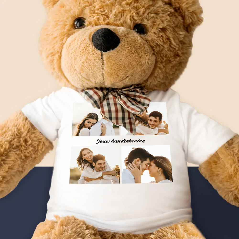 Fotocollage: 4 Foto'S En Handtekening - Knuffelbeer 90cm
