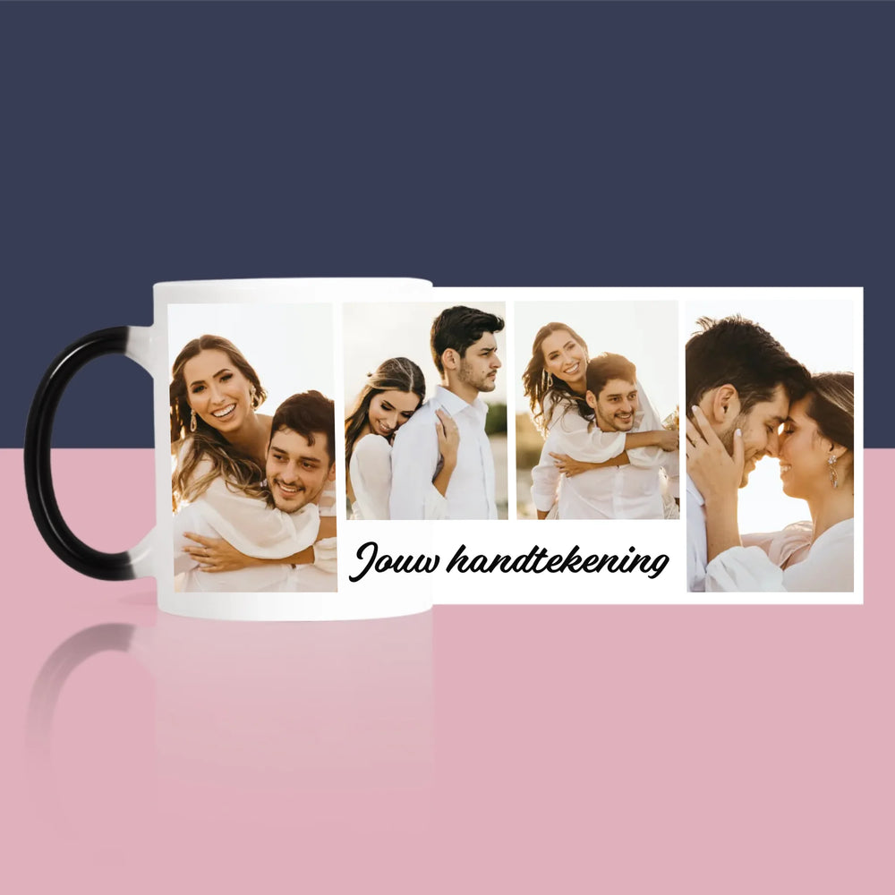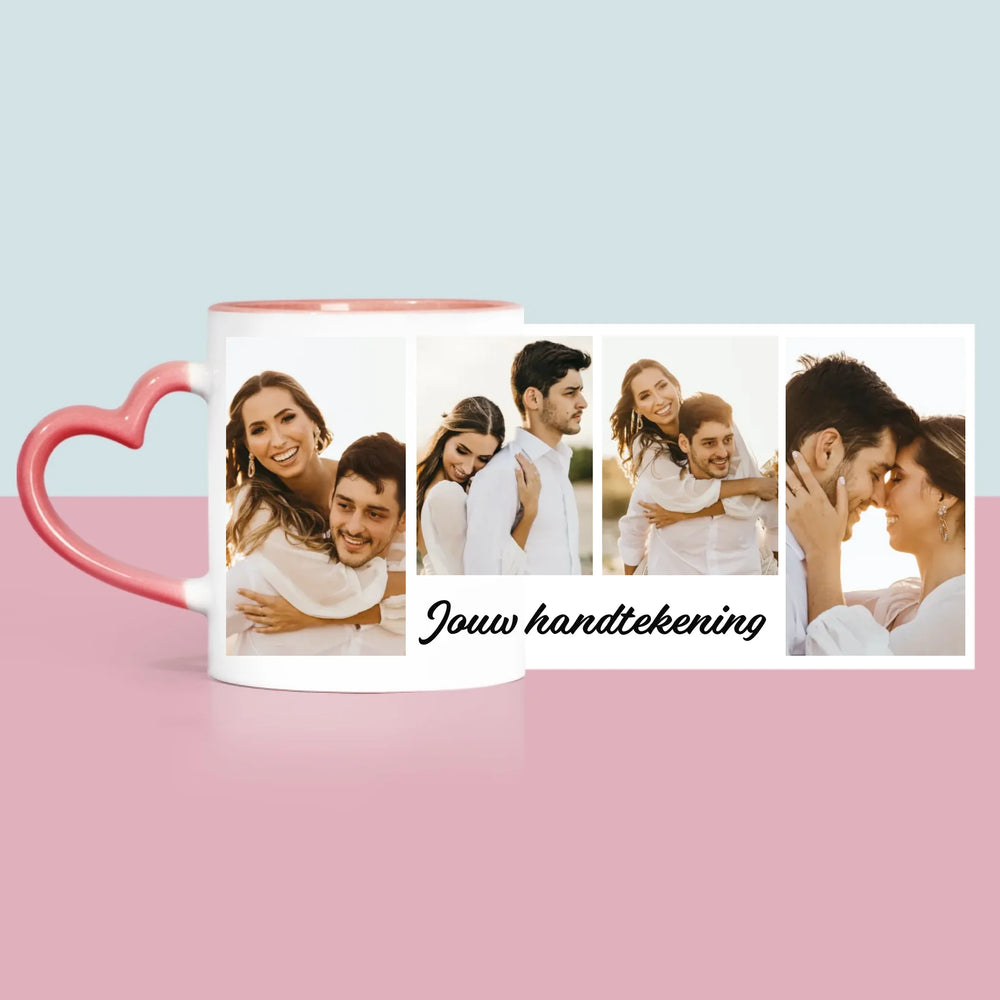 Fotocollage: 4 Foto'S En Handtekening - Mok