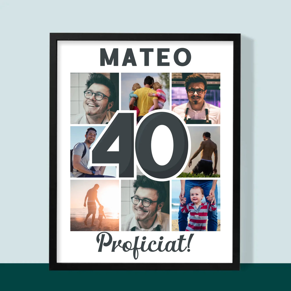 Fotocollage: 40 Jaar - Afdruk met frame