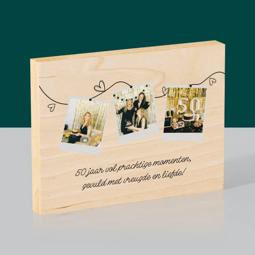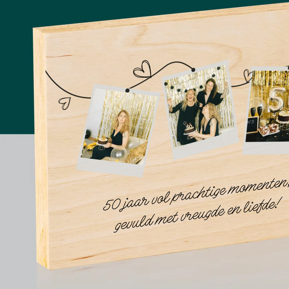 Fotocollage: 50 Jaar Vol Prachtige Momenten - Afdruk op hout