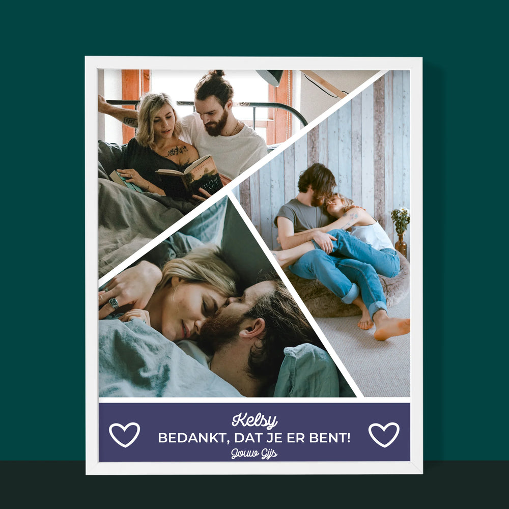 Fotocollage: Bedankt, Dat Je Er Bent - Afdruk met frame 30x40 (Verticaal)