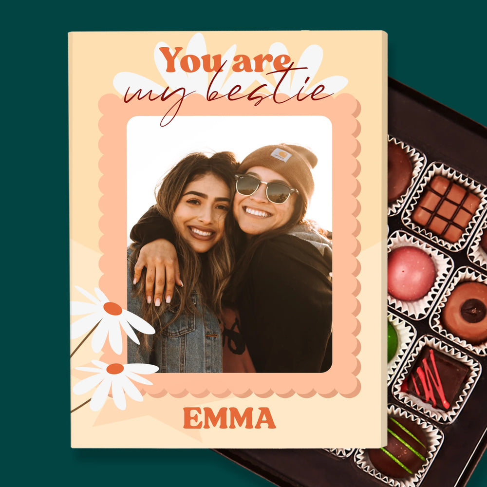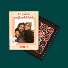 Heerlijke Belgische chocoladepralines in een elegante doos met de personalisatie naar keuze.