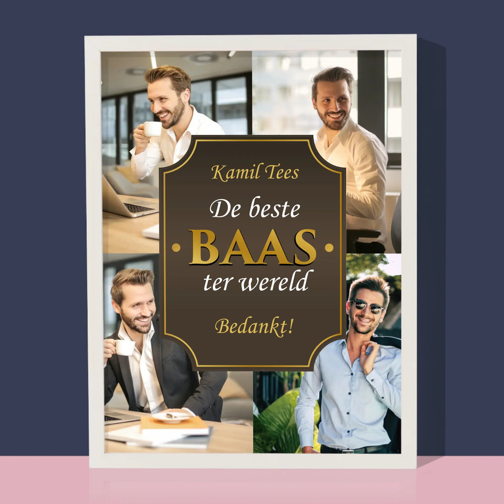 Fotocollage: De Beste Baas Ter Wereld - Afdruk met frame