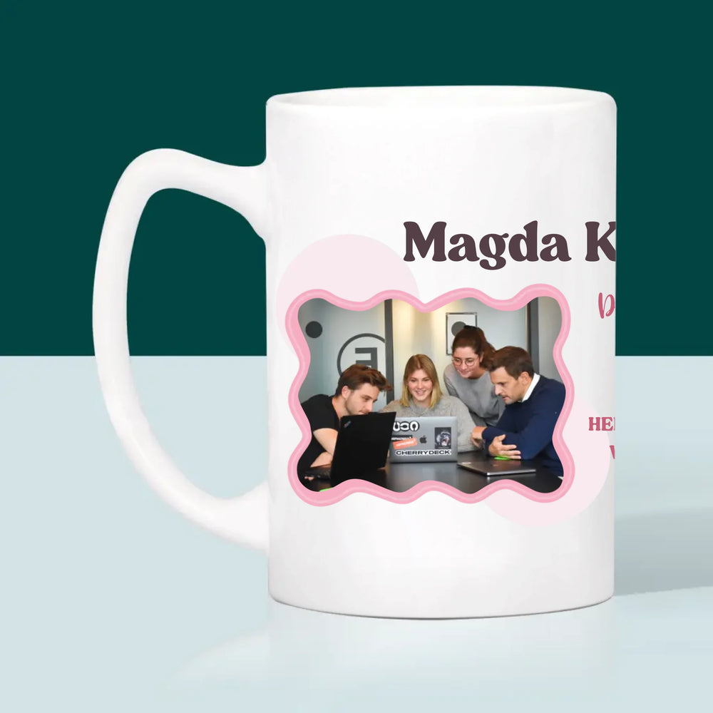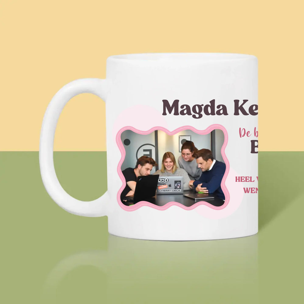 Een keramische mok van hoge kwaliteit met de personalisatie van uw keuze.