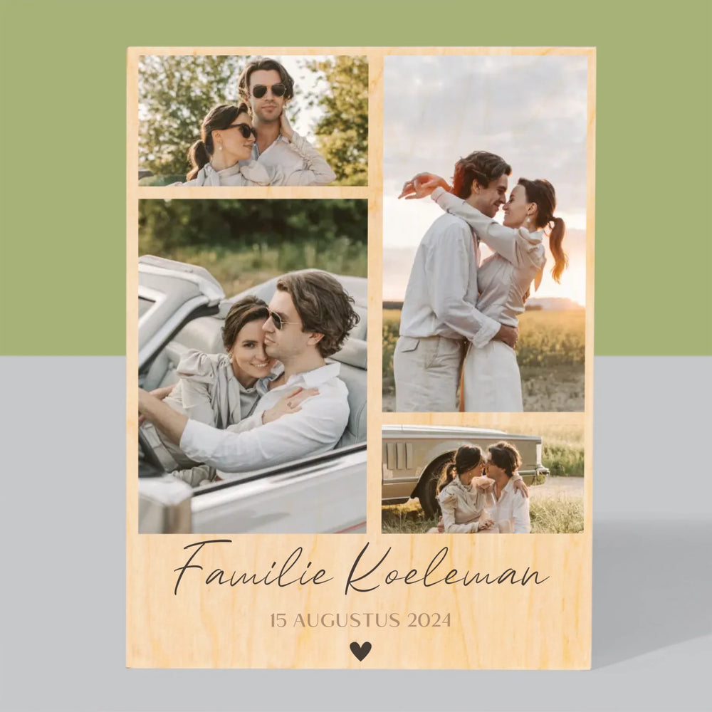 Fotocollage: Familie - Afdruk Op Hout (Verticaal)
