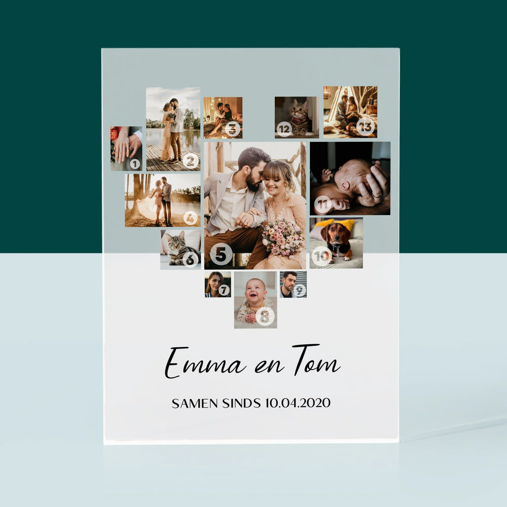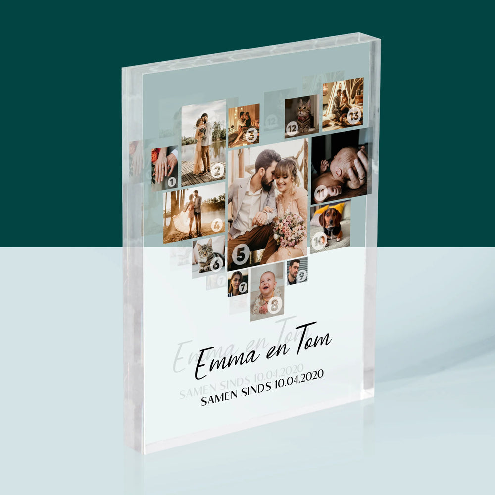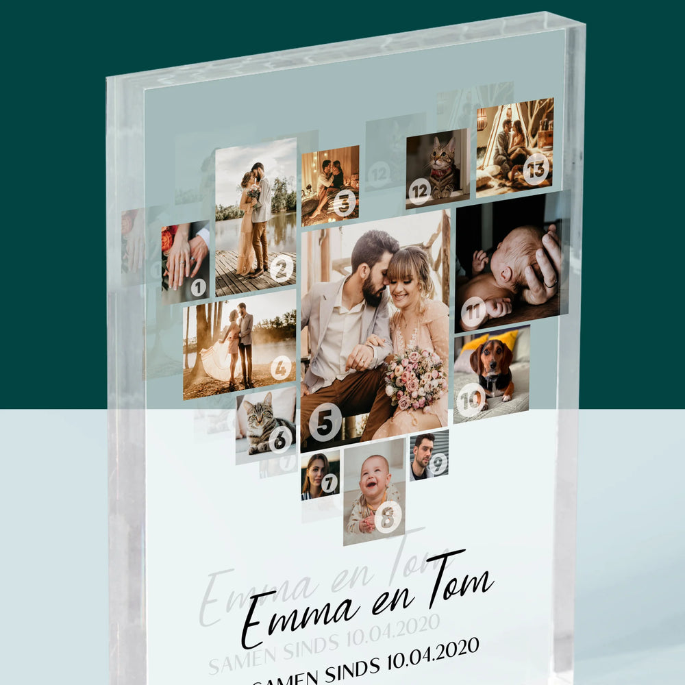 Fotocollage: Fotocollage Hart - Acryl blok - Verticaal