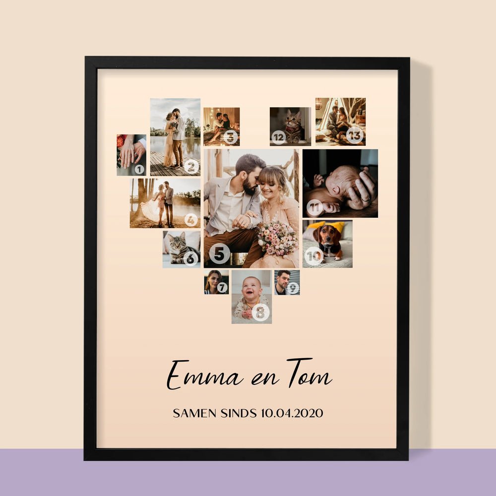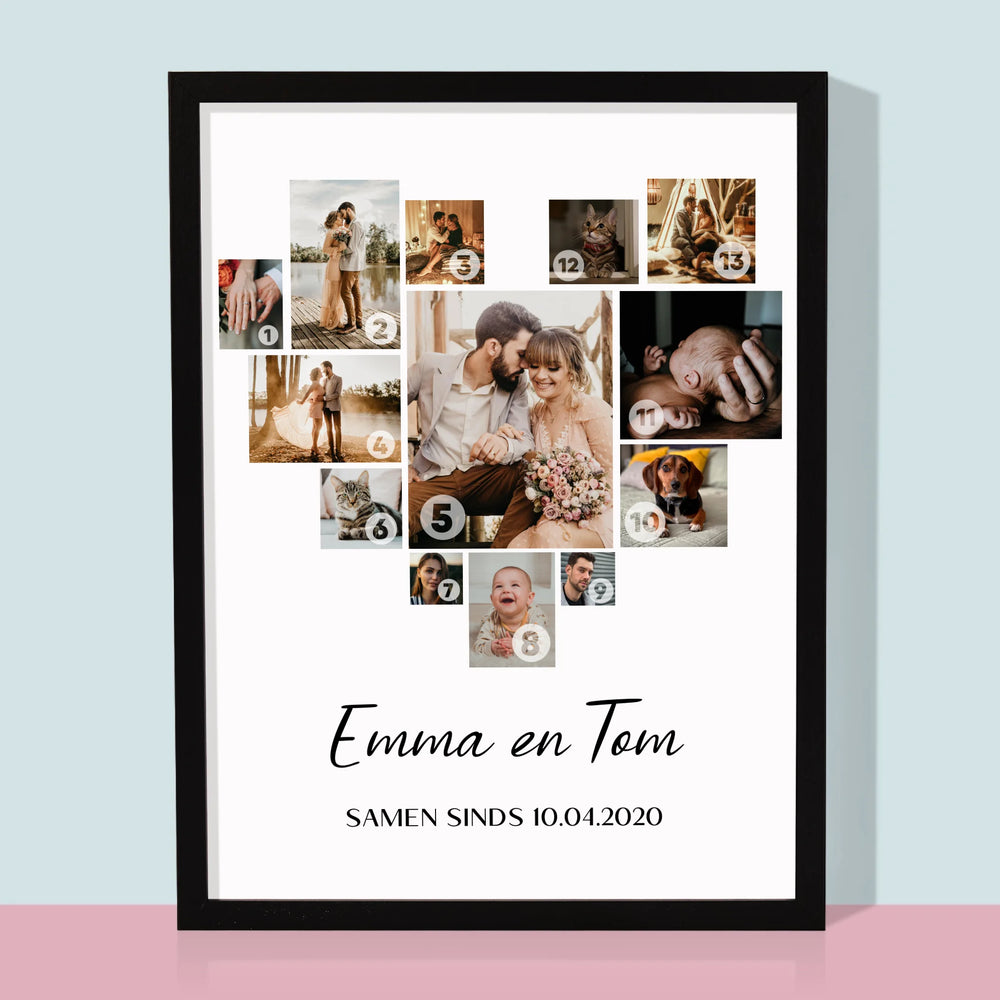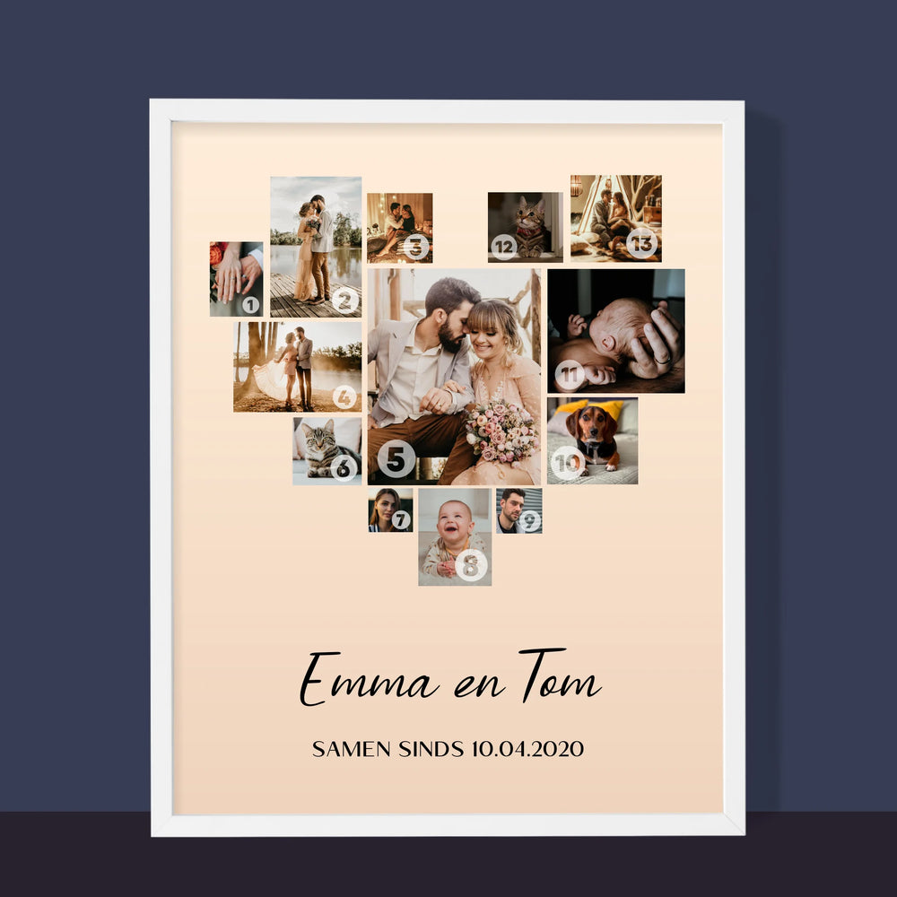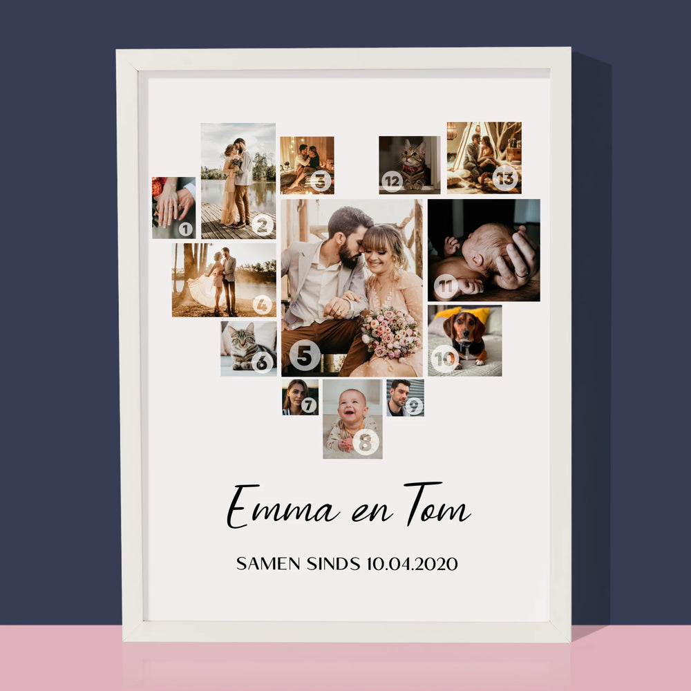 Fotocollage: Fotocollage Hart - Afdruk met frame 30x40 (Verticaal)