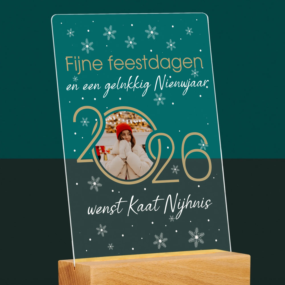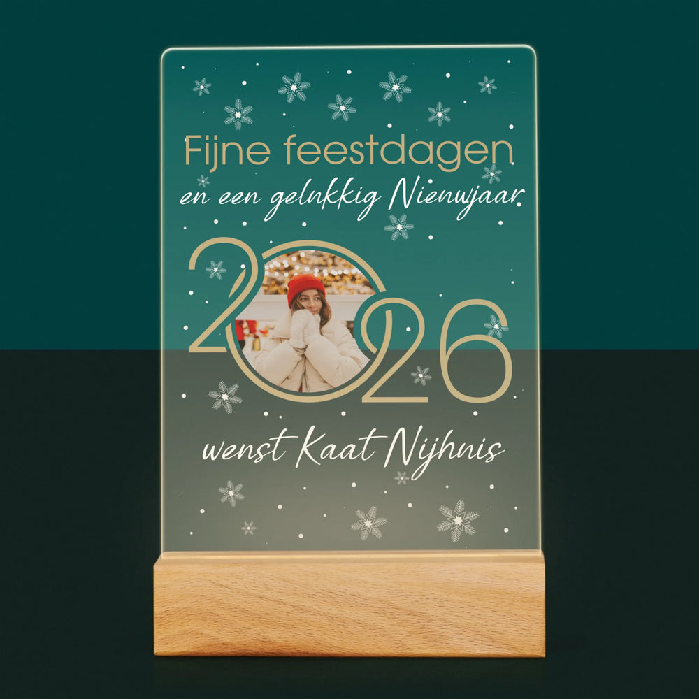 Fotocollage: Gelukkig Nieuwjaar - Afdruk op acrylglas met LED