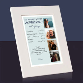 Dankzij de elegante houten standaard kan de print overal worden geplaatst en staat hij stabiel.