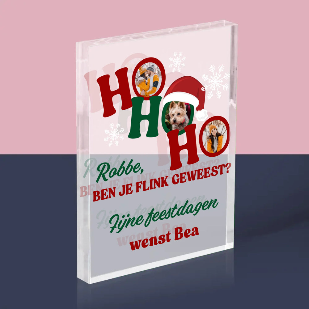 Fotocollage: Ho Ho Ho - Acryl blok - Verticaal