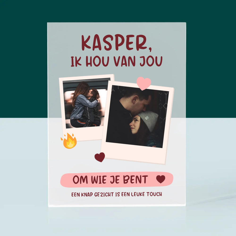 Fotocollage: Ik Hou Van Jou Om Wie Je Bent - Acryl blok - Verticaal