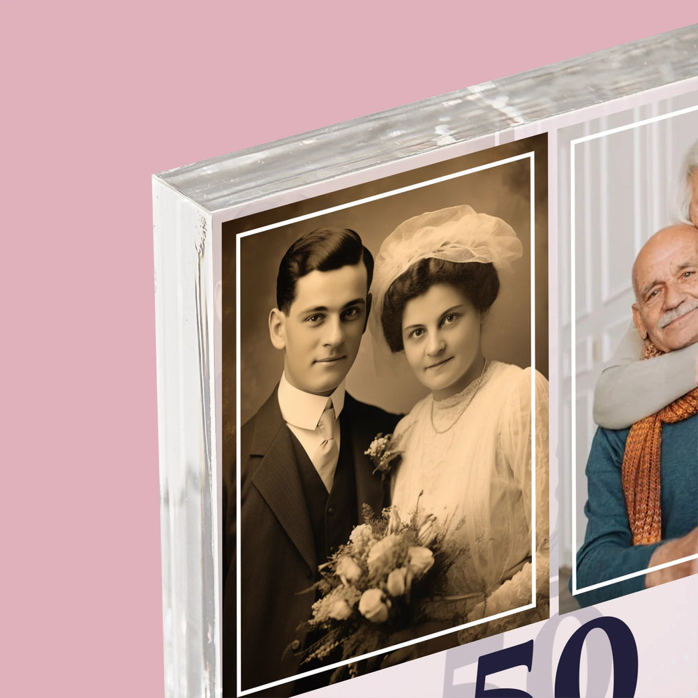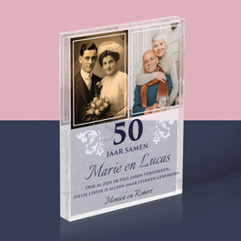 Fotocollage: Jarenlang Samen - Acryl blok - Verticaal