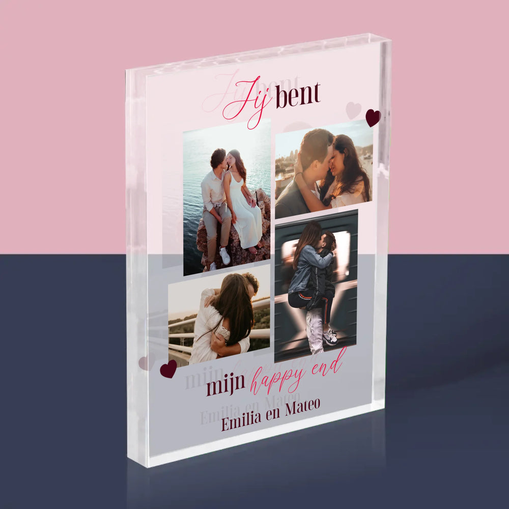Fotocollage: Jij Bent Mijn Happy End - Acryl blok - Verticaal