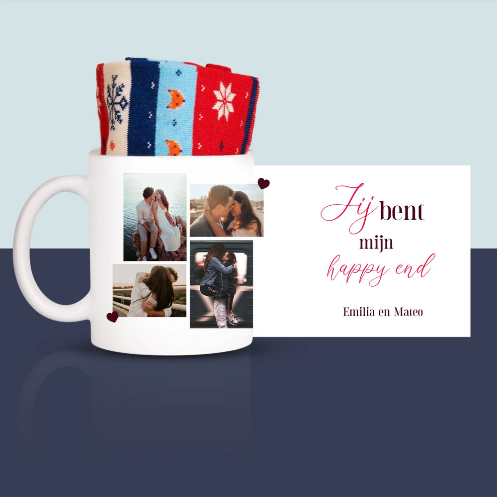 Fotocollage: Jij Bent Mijn Happy End - Wintersokken in een mok