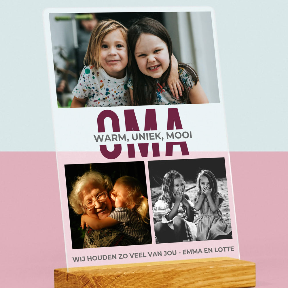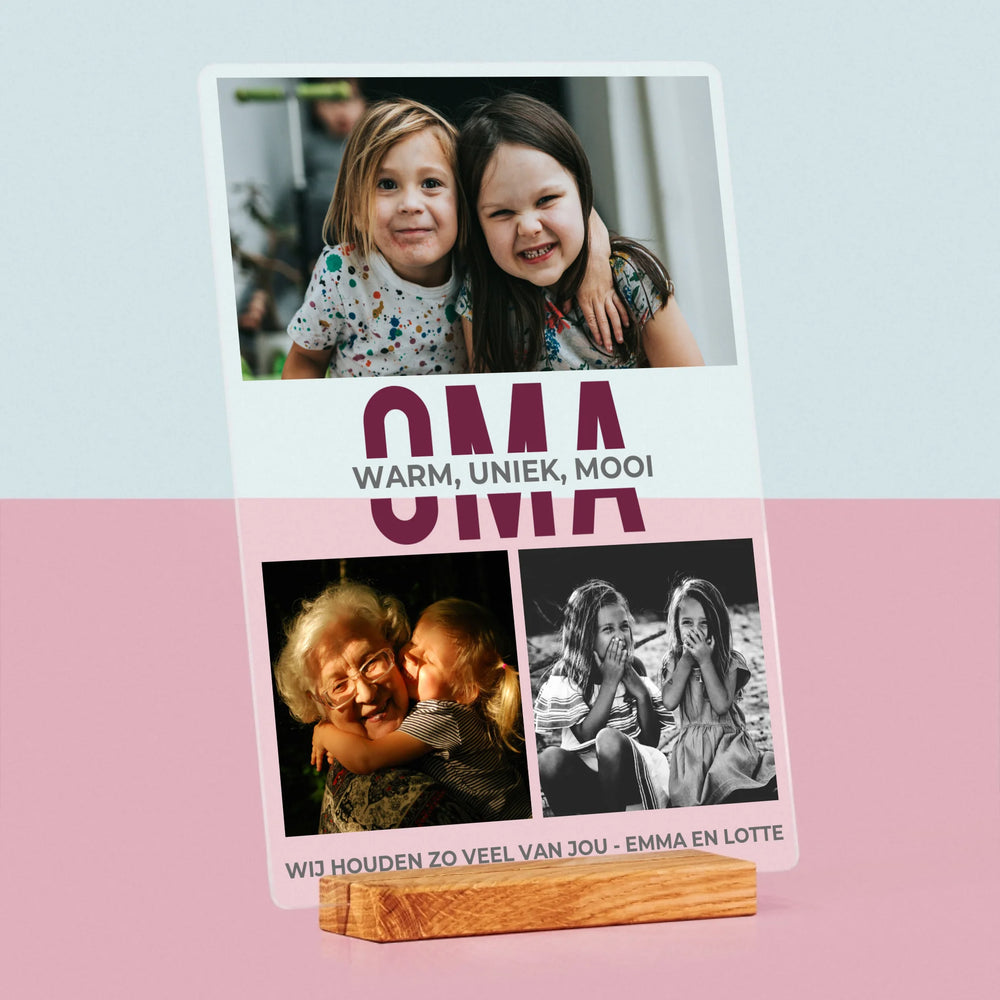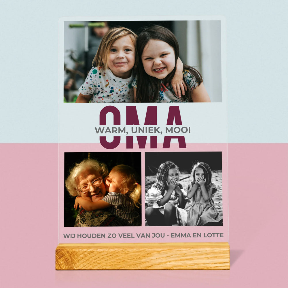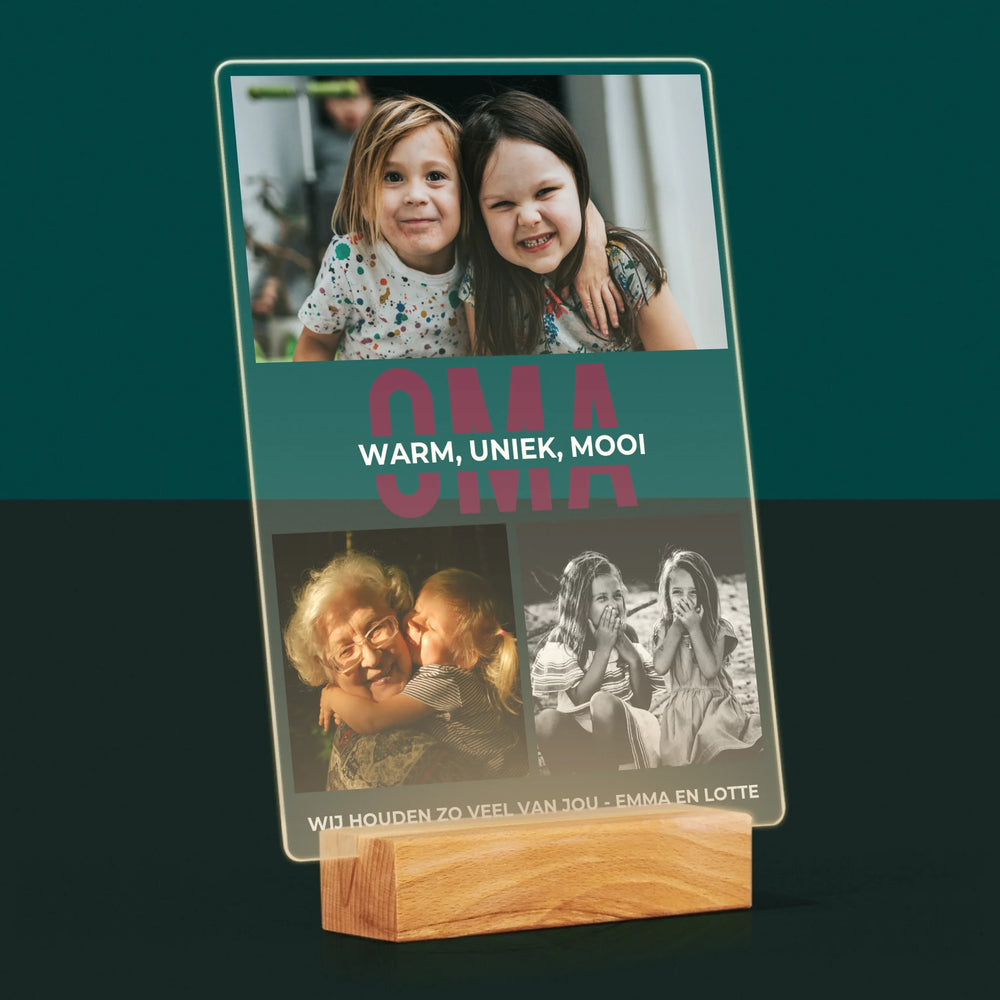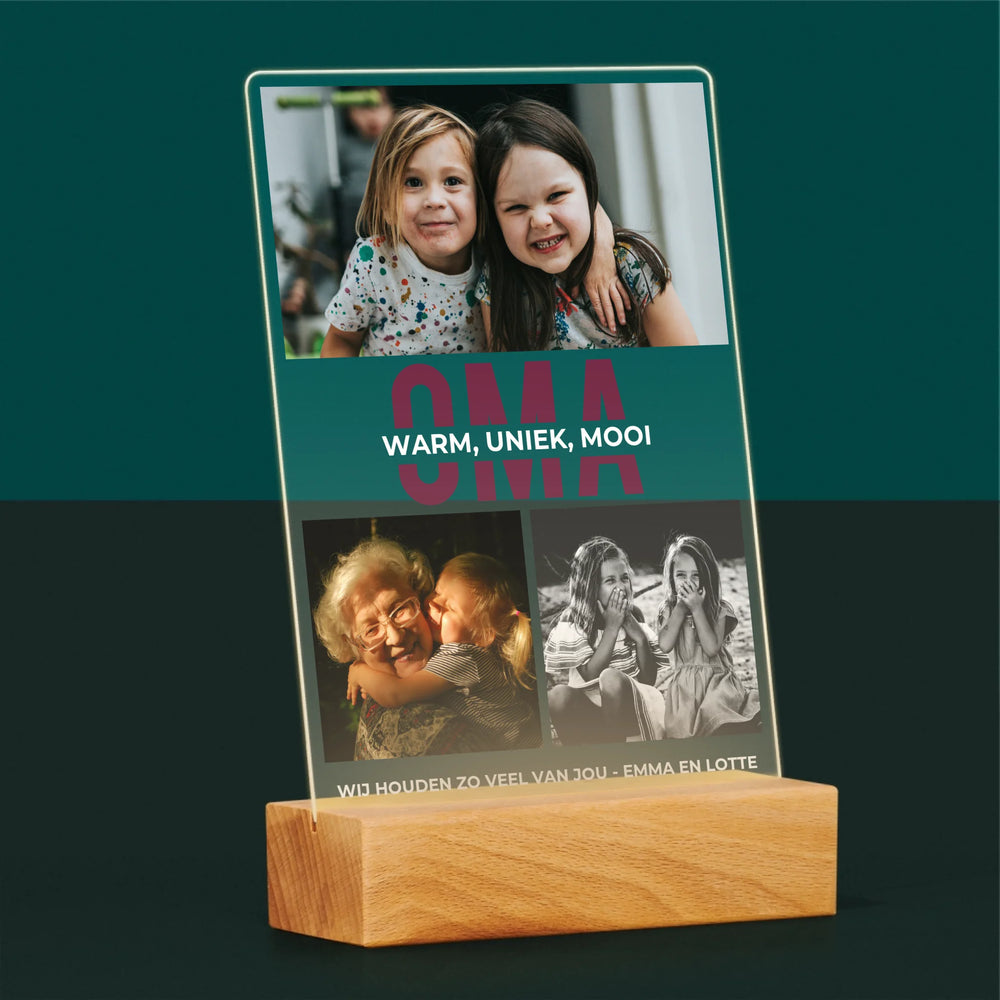 Fotocollage: Kenmerken Oma - Afdruk op acrylglas met LED
