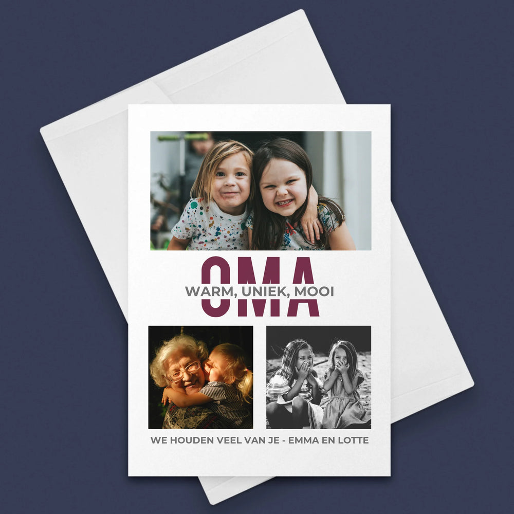 Een gepersonaliseerde wenskaart voor een speciale gelegenheid. Kies je eigen foto's en maak een uniek cadeau!