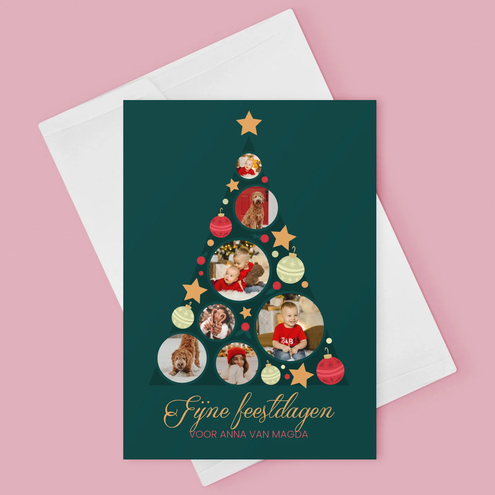 Fotocollage: Kerstboom, Kerstballen - Wenskaart