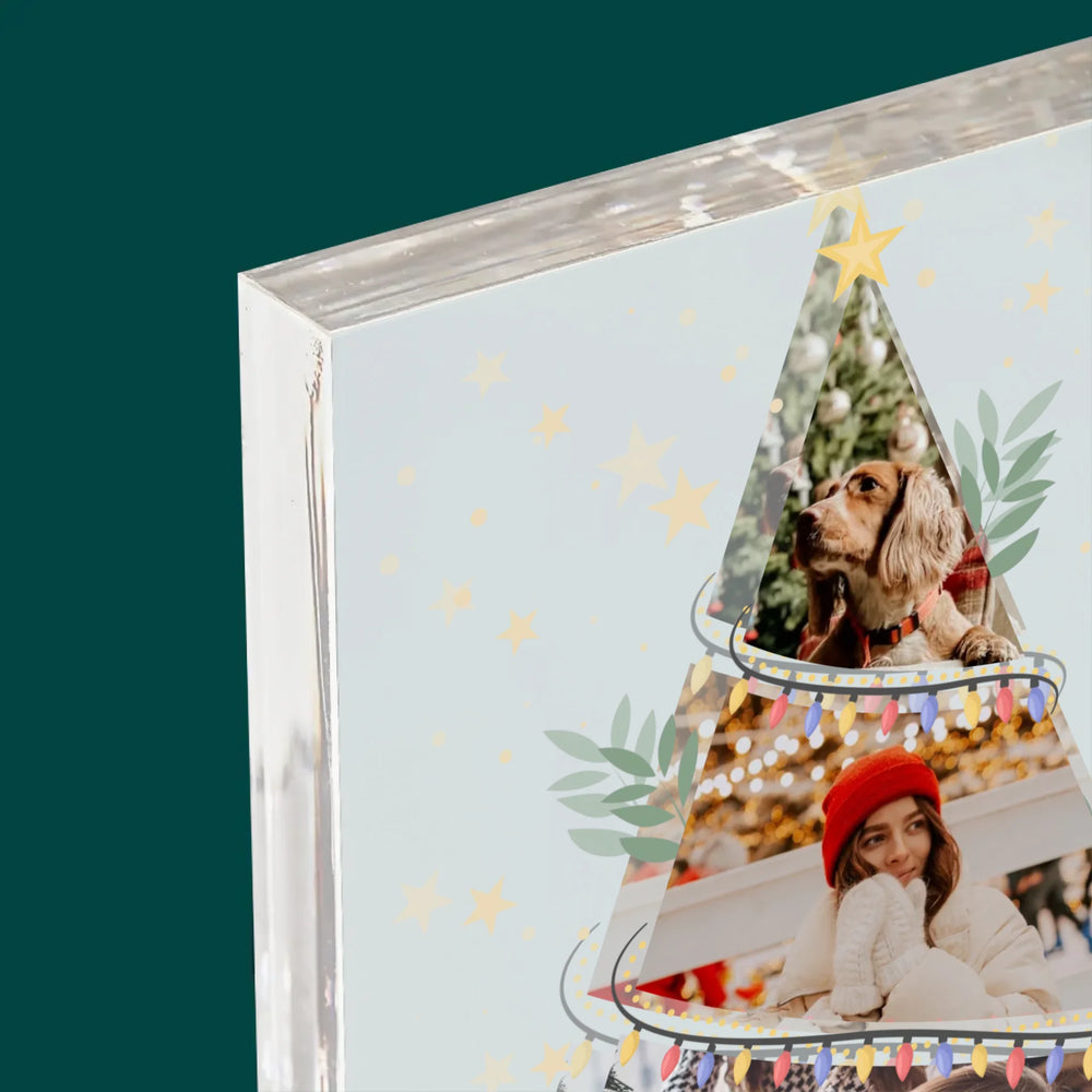 Fotocollage: Kerstboom, Magische Feestdagen - Acryl blok - Verticaal