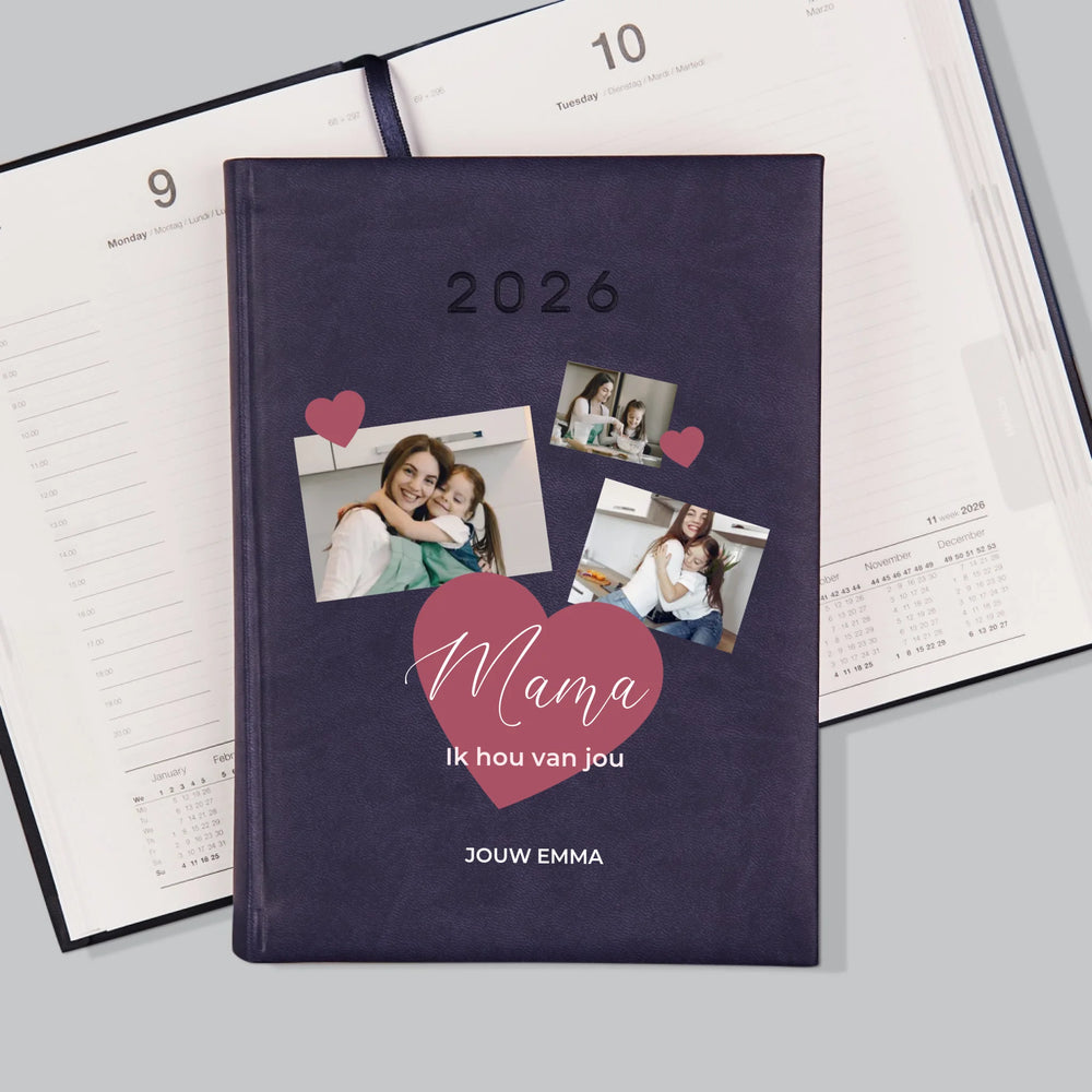Kalender in A5-formaat met door jou gekozen personalisatie.