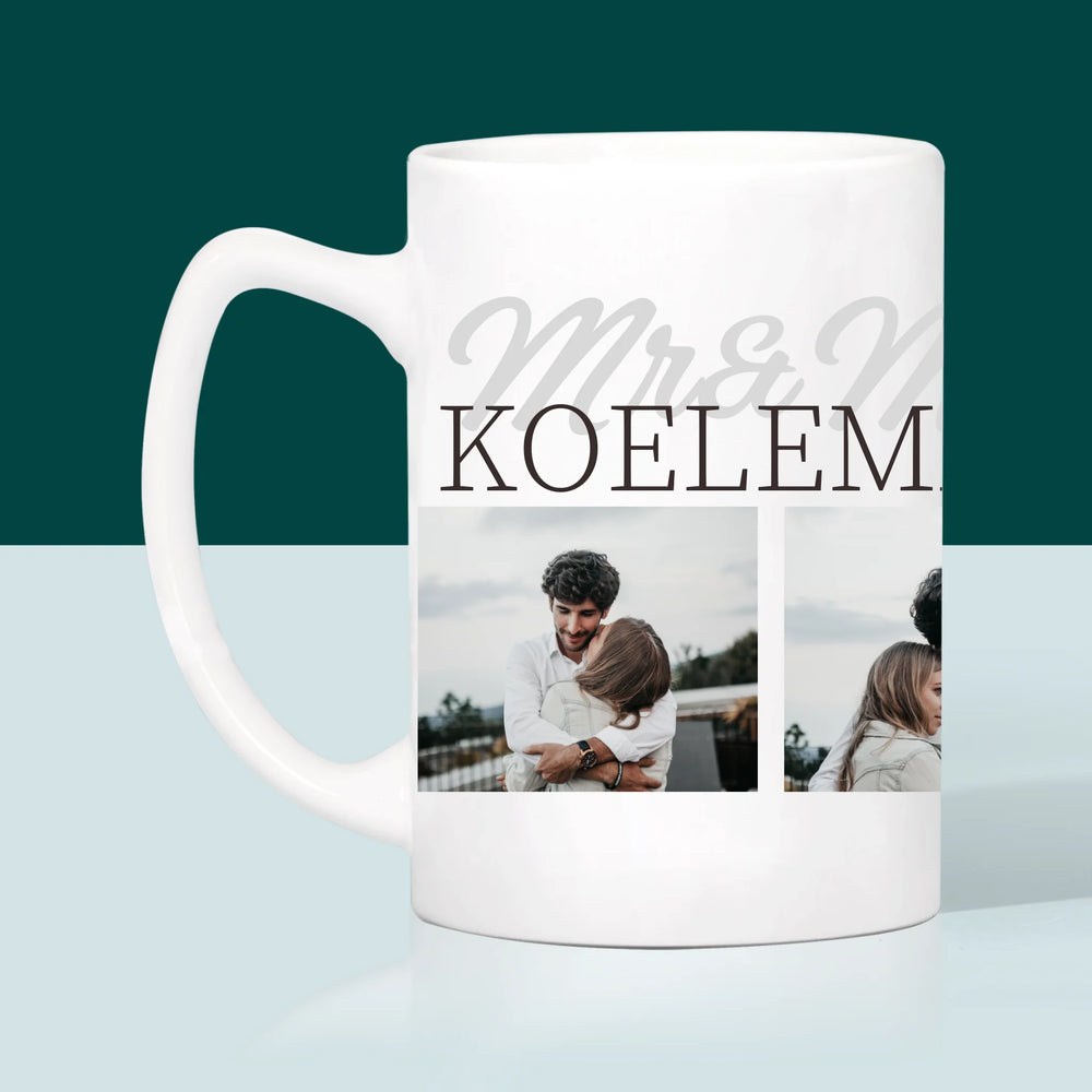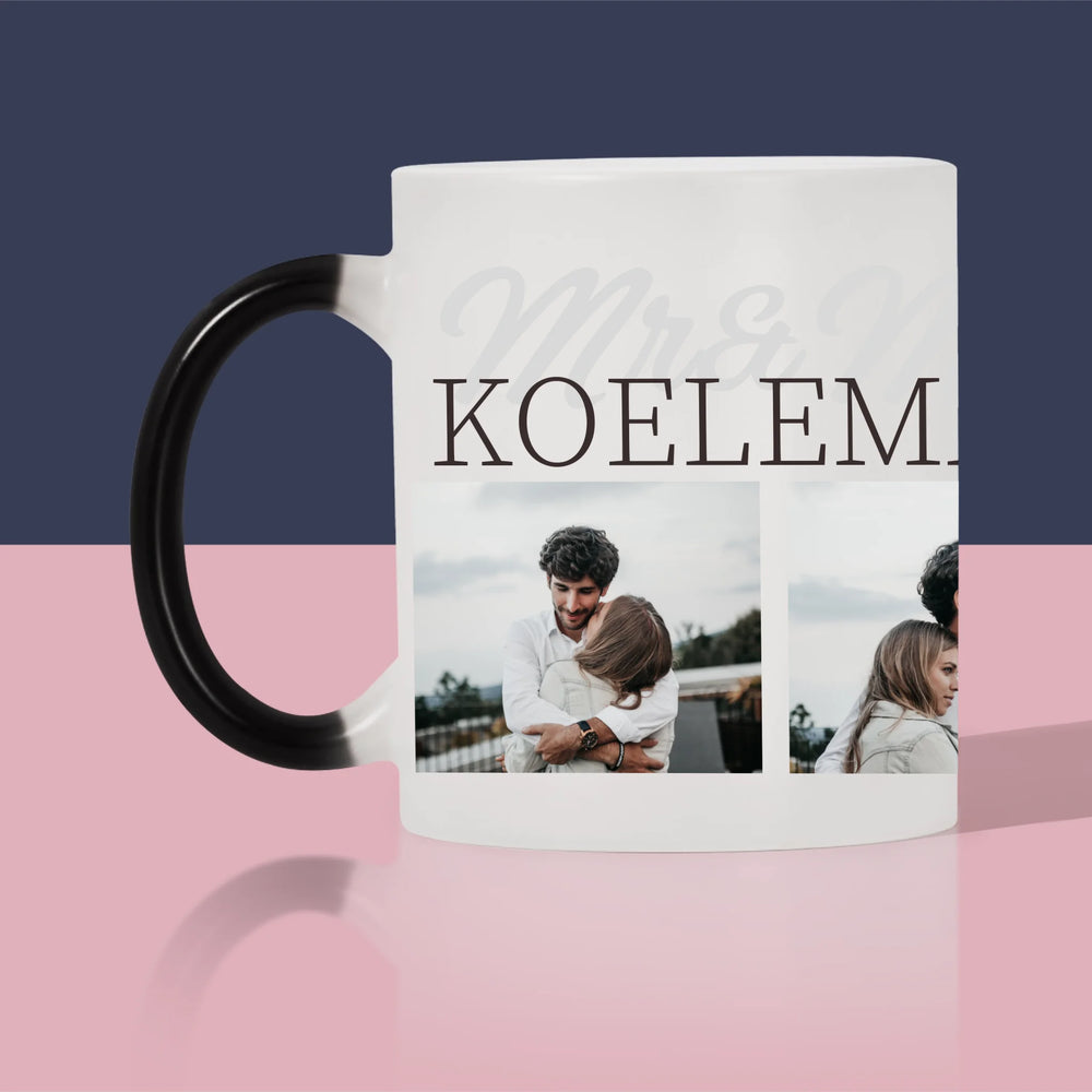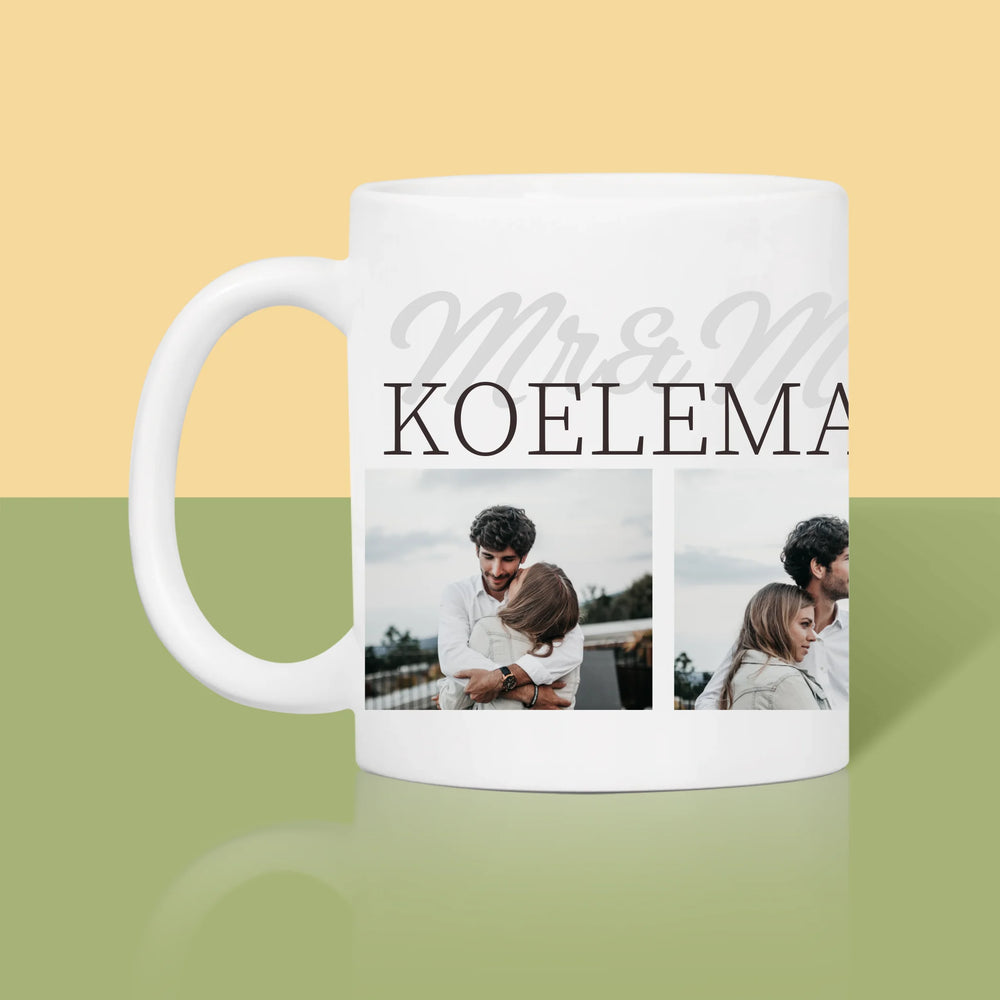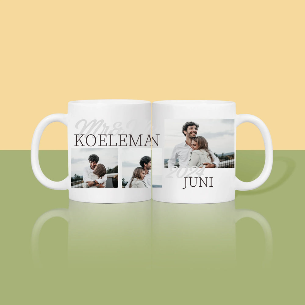 Fotocollage: Mr&Mrs Datum - Mok hartje