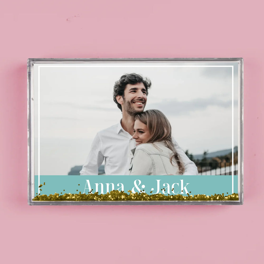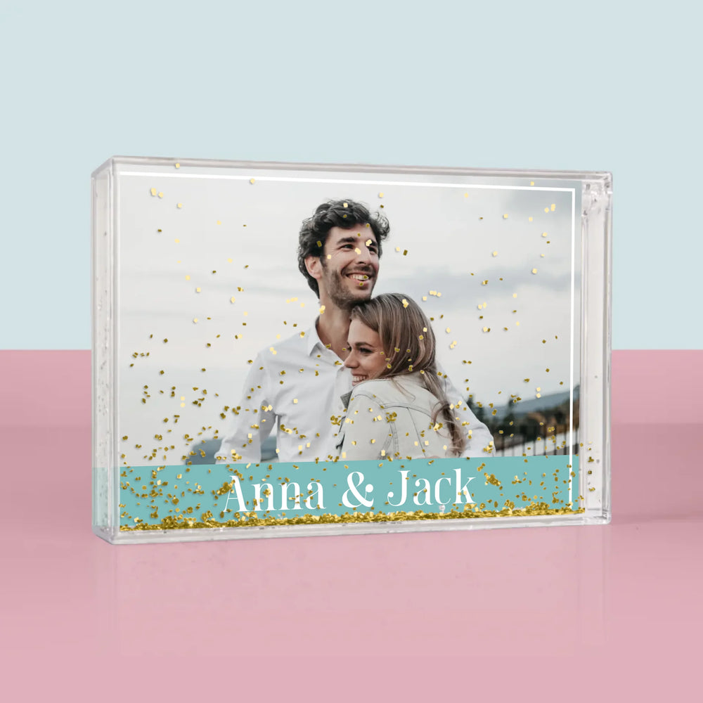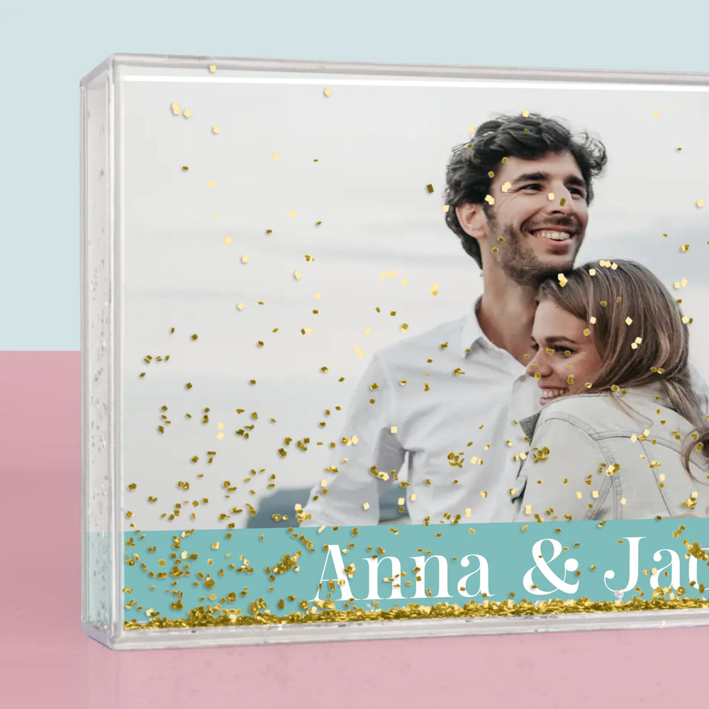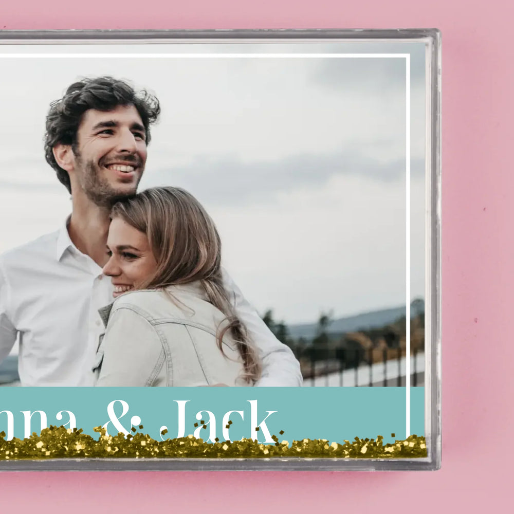 Een fotokader naar keuze met een gepersonaliseerd ontwerp.