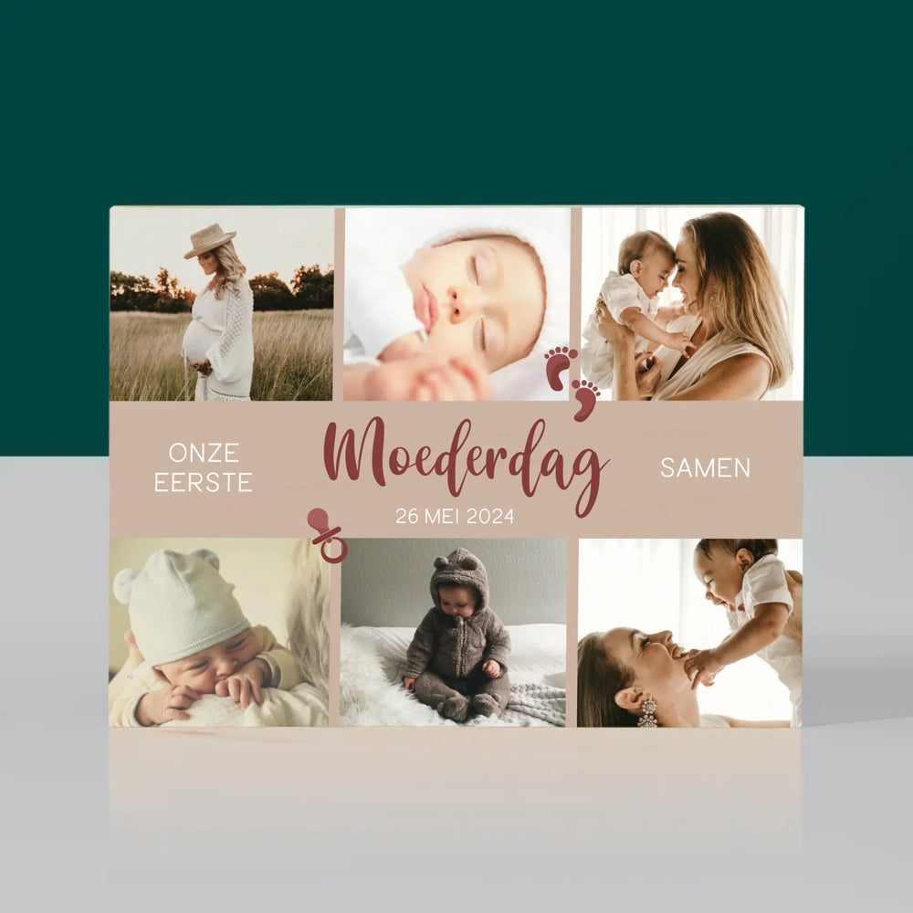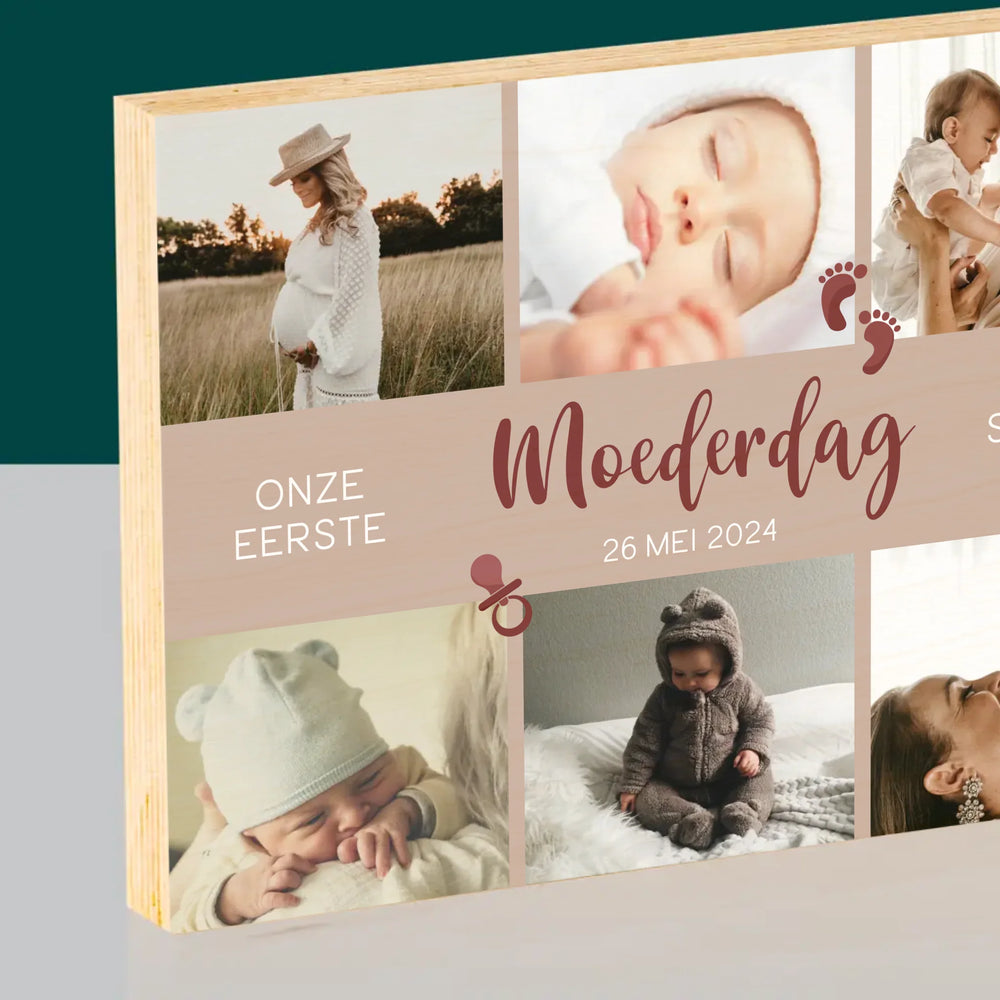 Fotocollage: Onze Eerste Moederdag Samen - Afdruk op hout