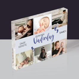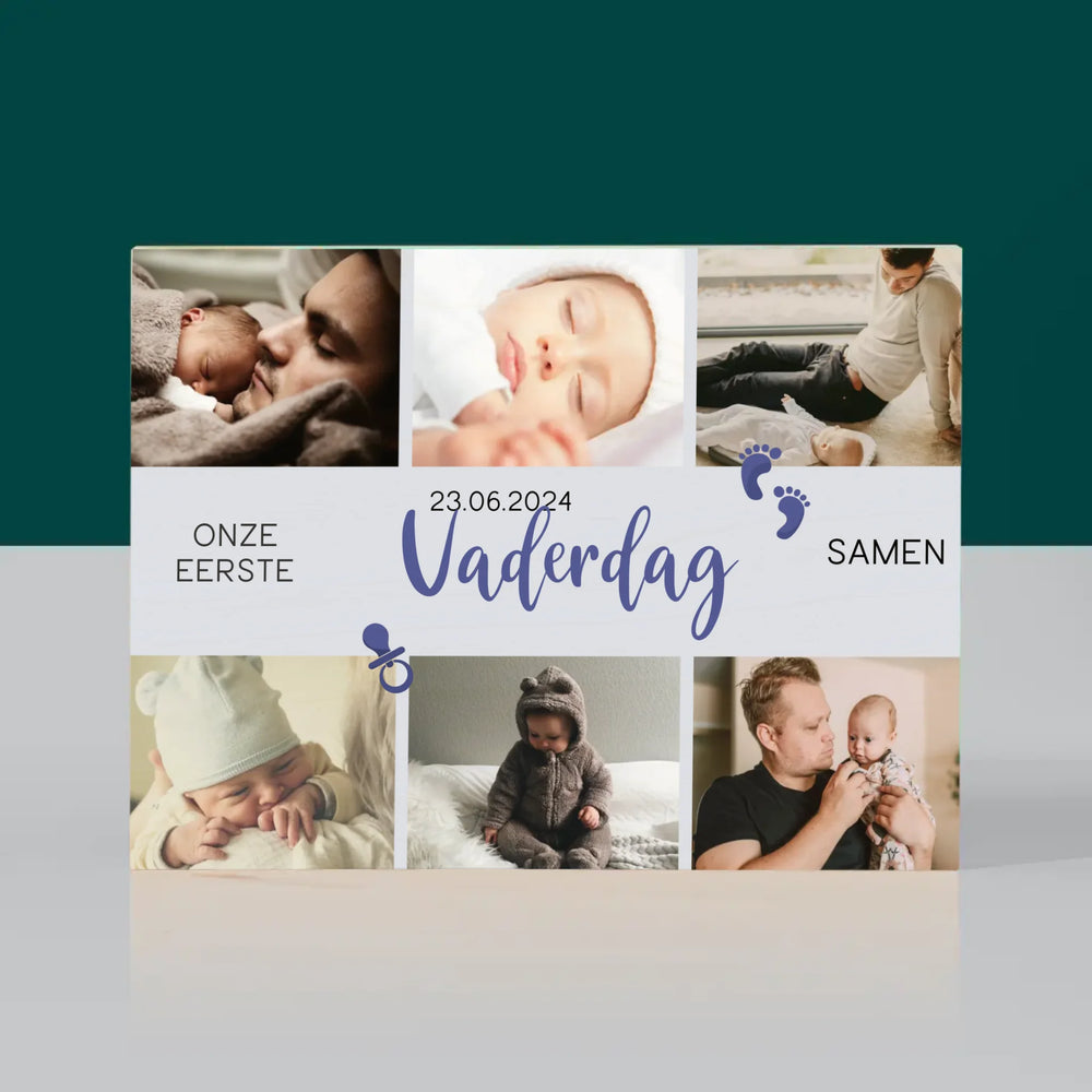 Fotocollage: Onze Eerste Vaderdag - Afdruk op hout