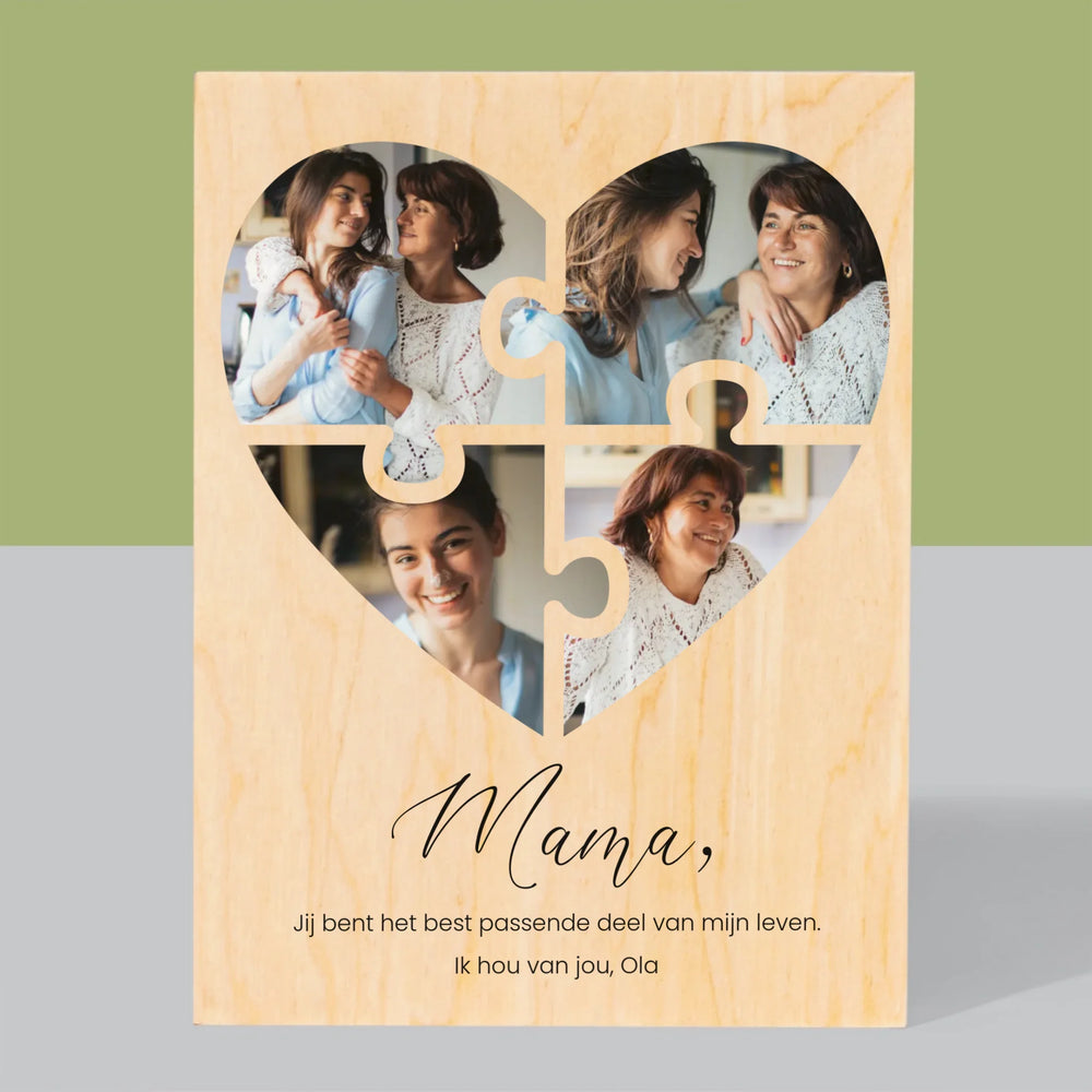 Fotocollage: Puzzel Hart, Voor Mama - Afdruk op hout