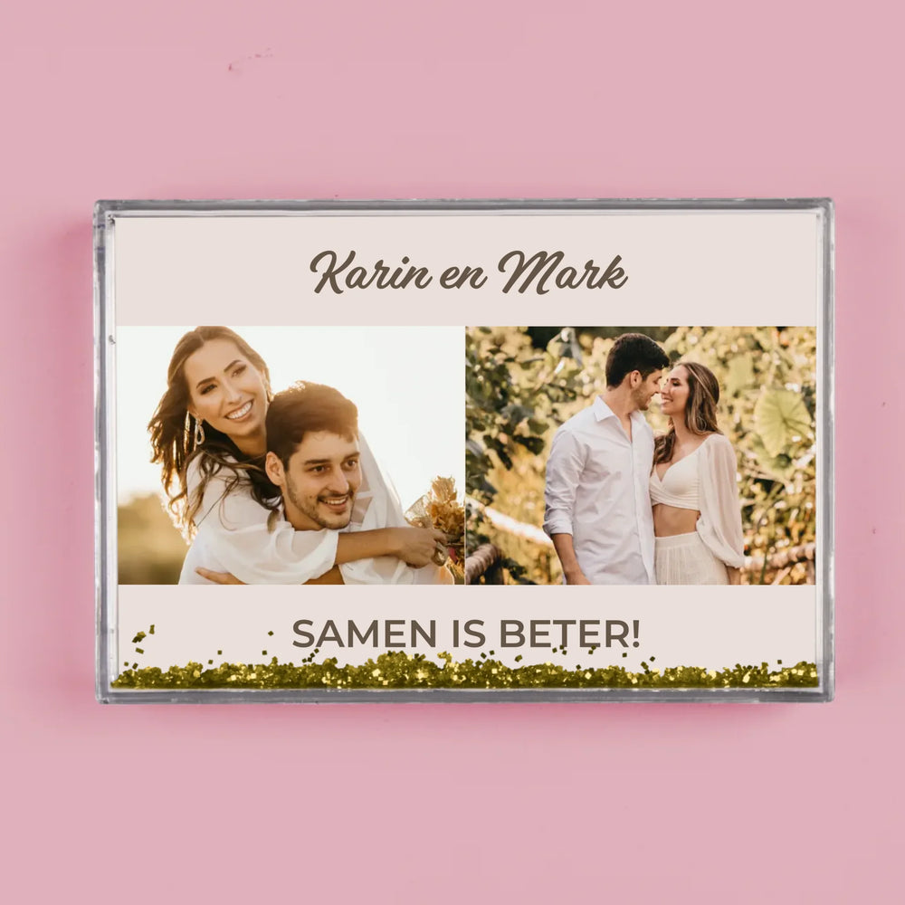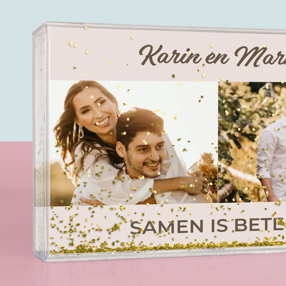 Gemaakt van transparant plastic, van binnen gevuld met water en confetti in de vorm van hartvormige bloemblaadjes!