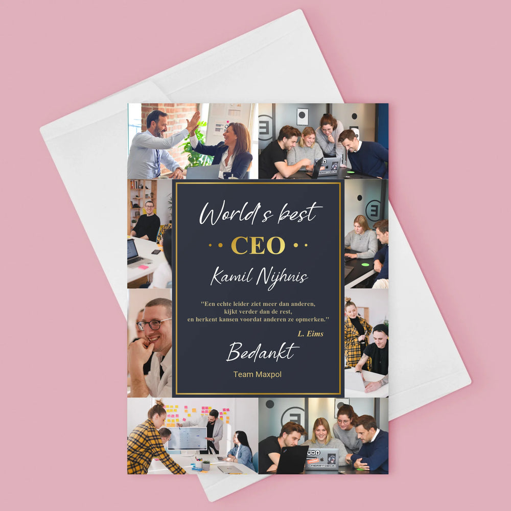 Een gepersonaliseerde wenskaart voor een speciale gelegenheid. Kies je eigen foto's en maak een uniek cadeau!