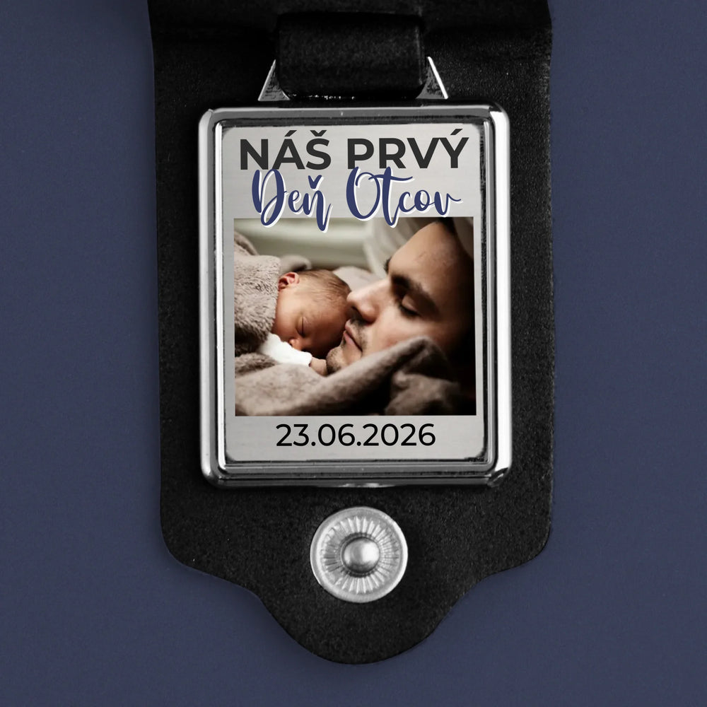 Fotokolaż: Pierwszy Dzień Taty - Kožená kľúčenka s fotografiou