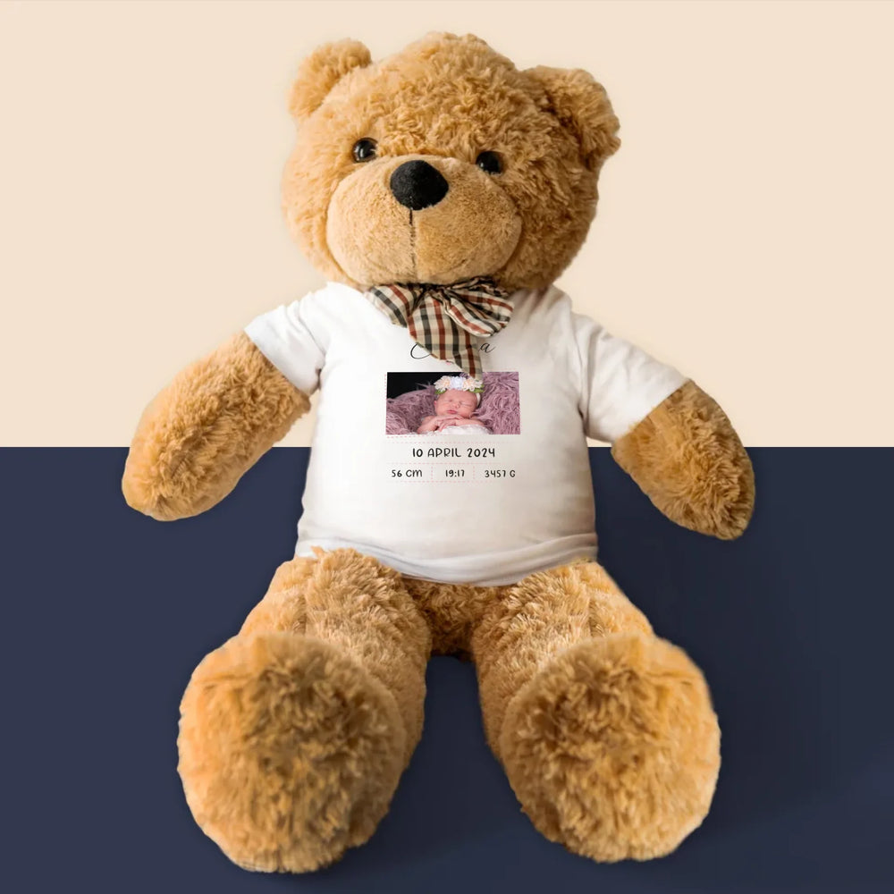 Grote knuffelbeer met jouw gekozen ontwerp.