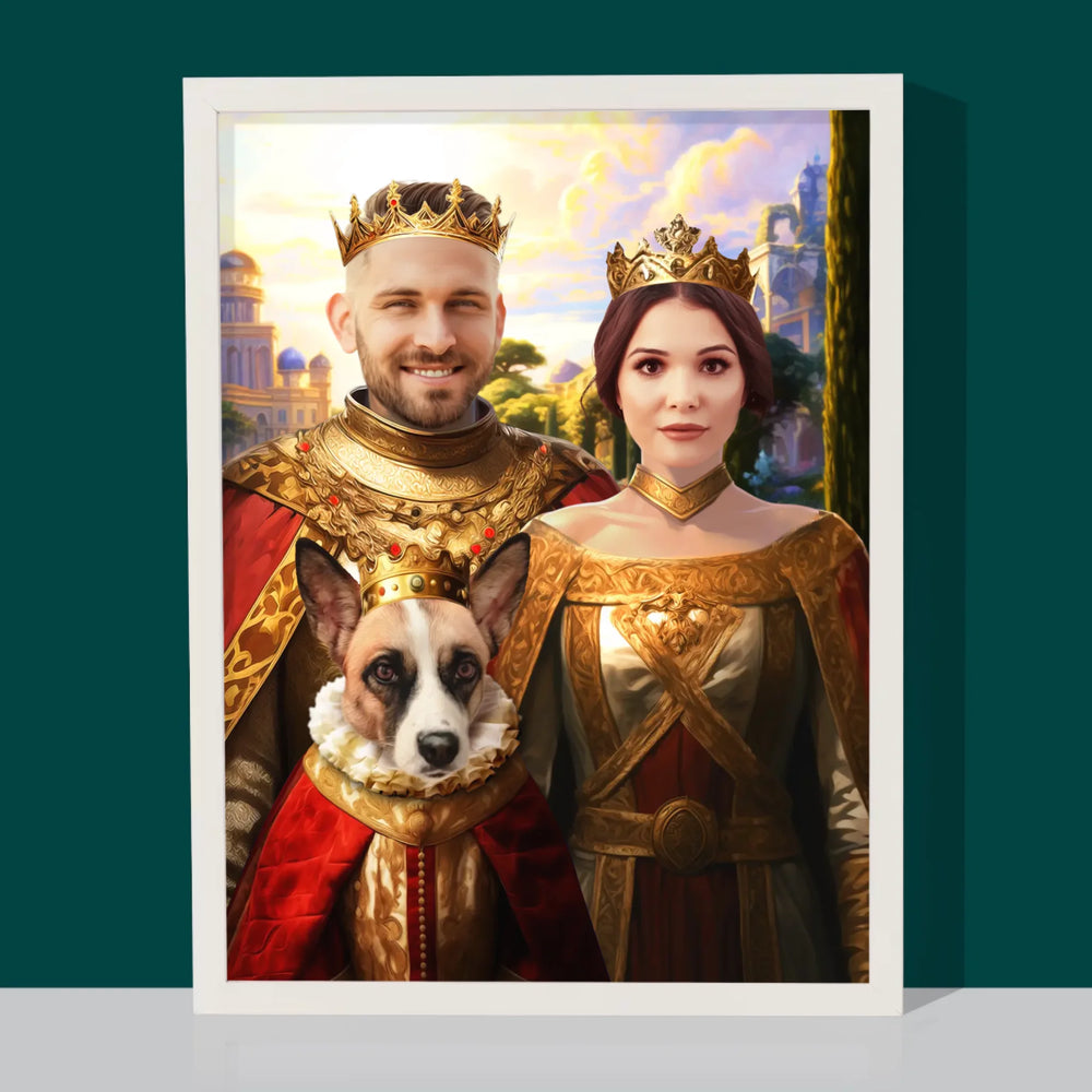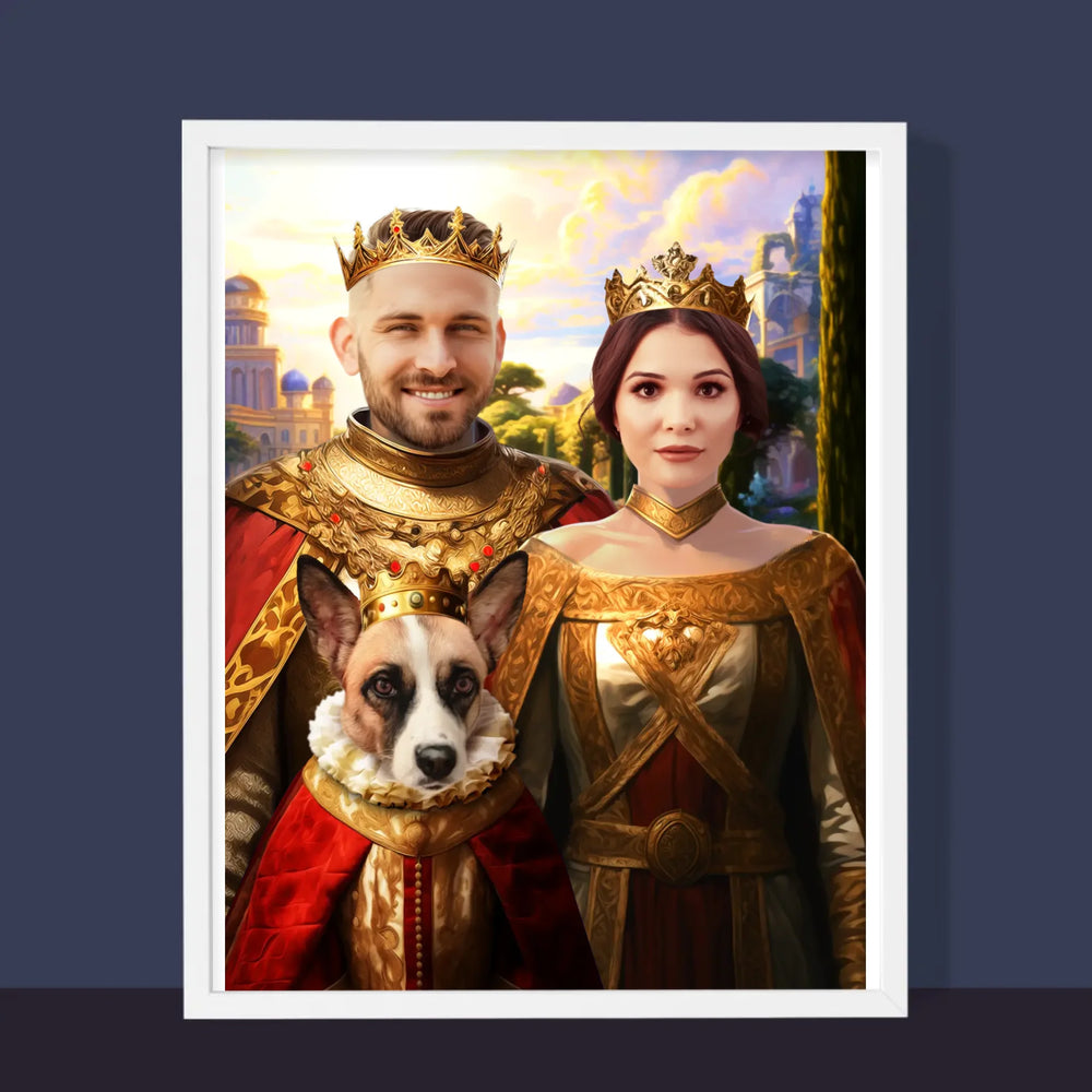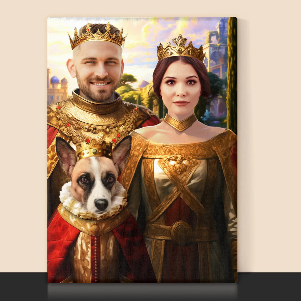 Koninklijk Portret: Het Koninklijke Paar Met Hun Huisdier - Foto op canvas