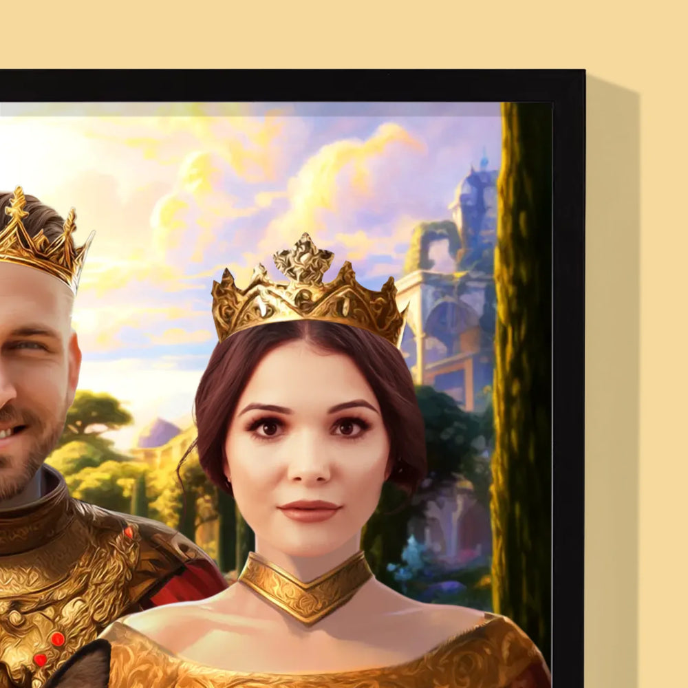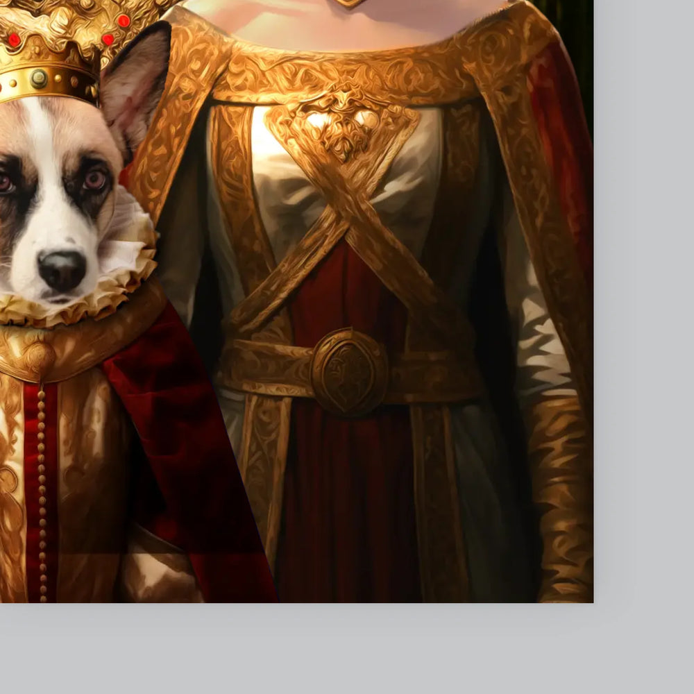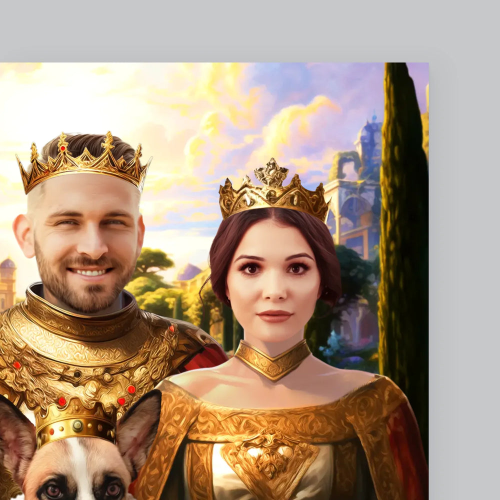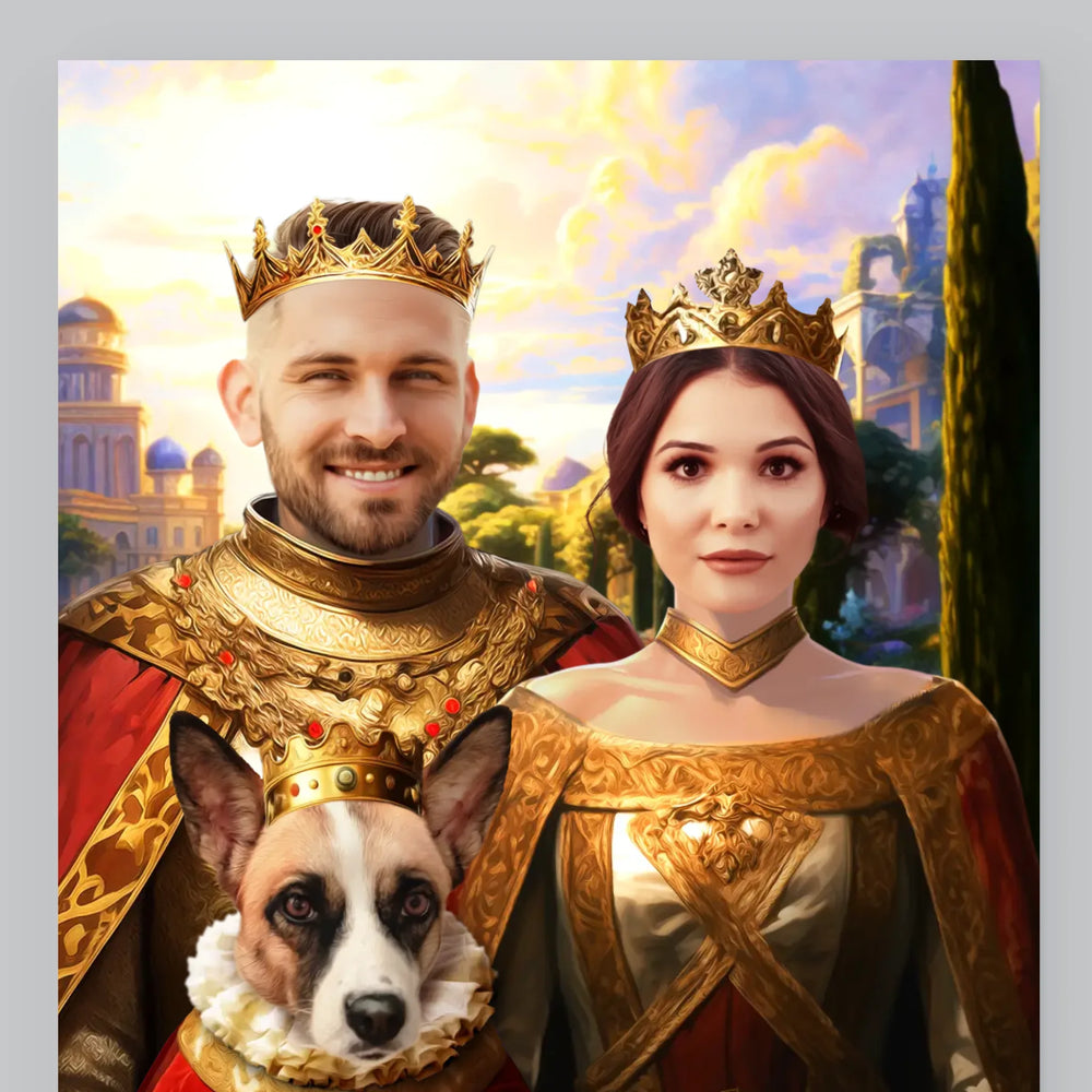 Koninklijk Portret: Het Koninklijke Paar Met Hun Huisdier - Foto op canvas