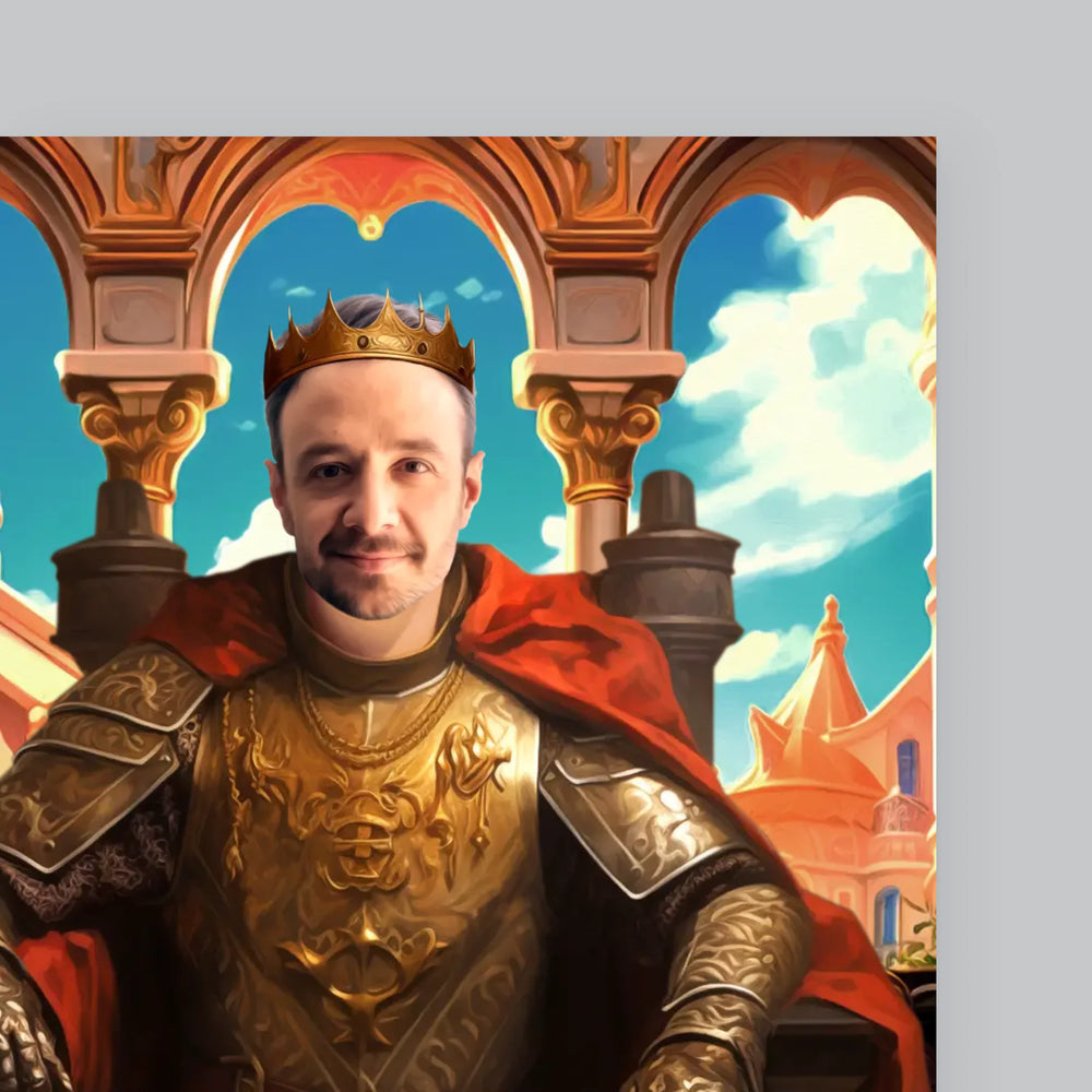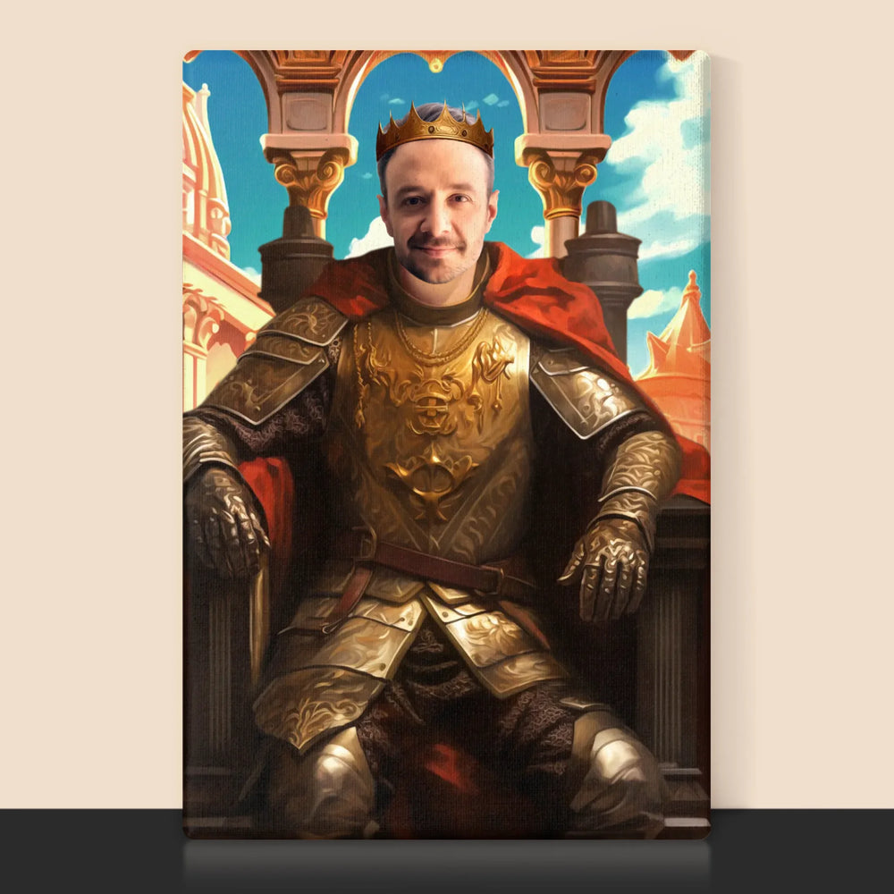 Koninklijk Portret: Koning Op De Troon - Afdruk met frame