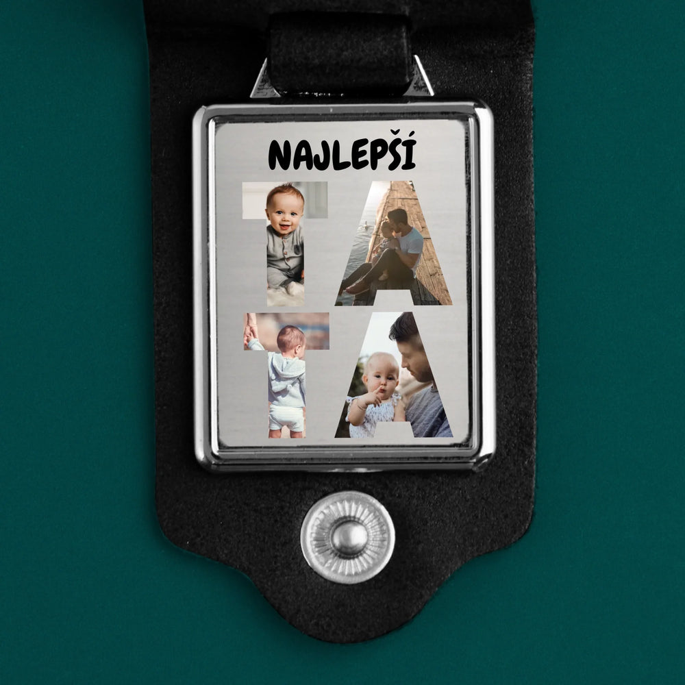 Słowo Ze Zdjęć: Tata - Kožená kľúčenka s fotografiou