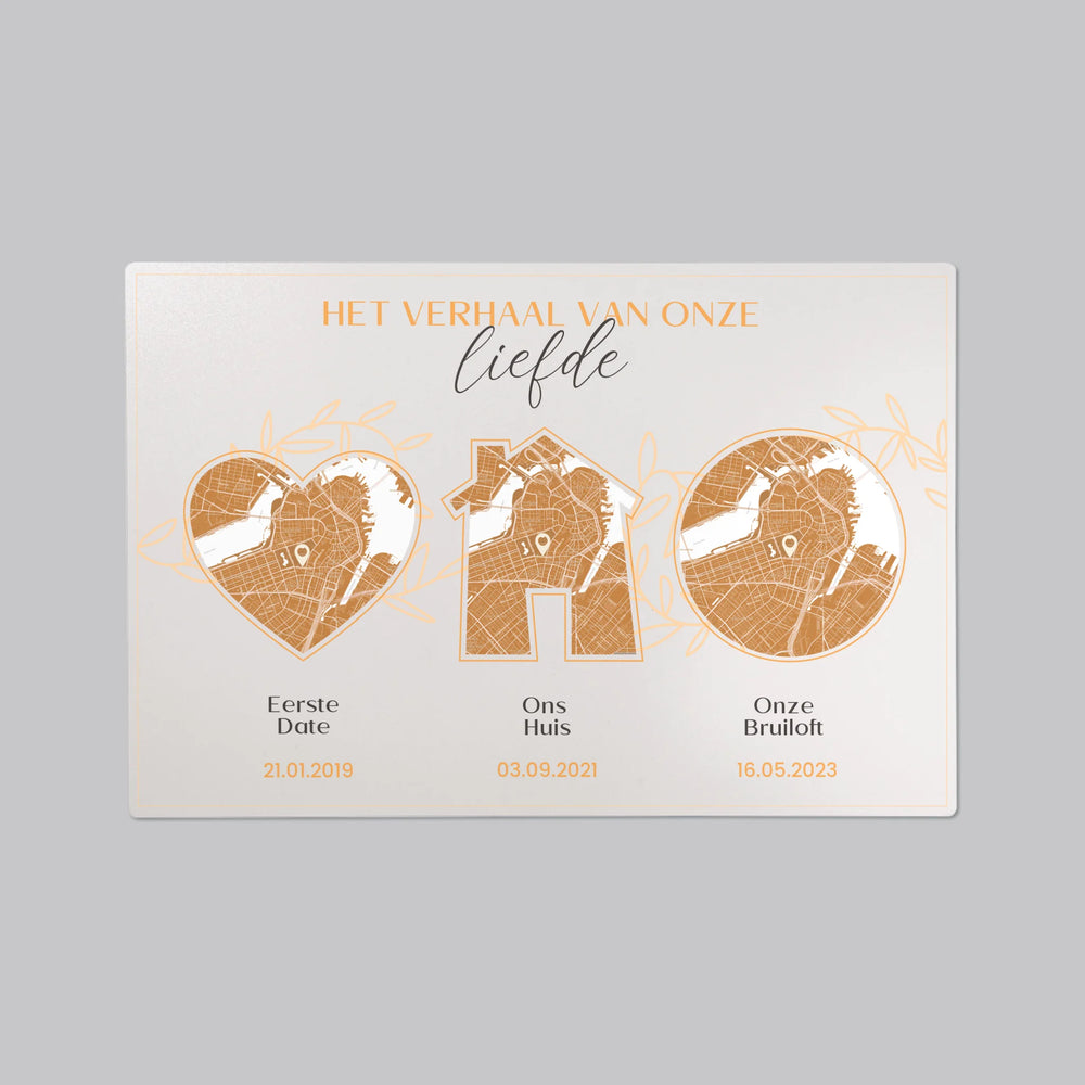 Stadsplastadsplattegrond: Stadskaart: Het Verhaal Van Onze Liefde - Bureauonderlegger