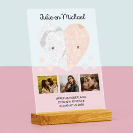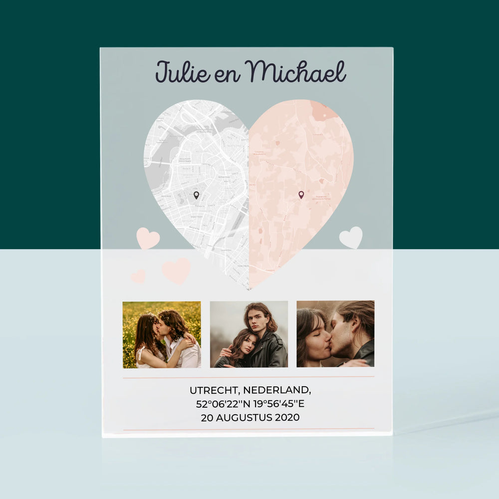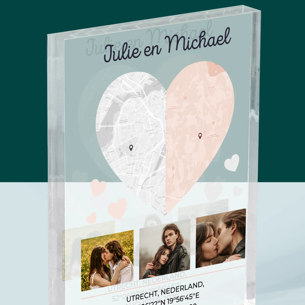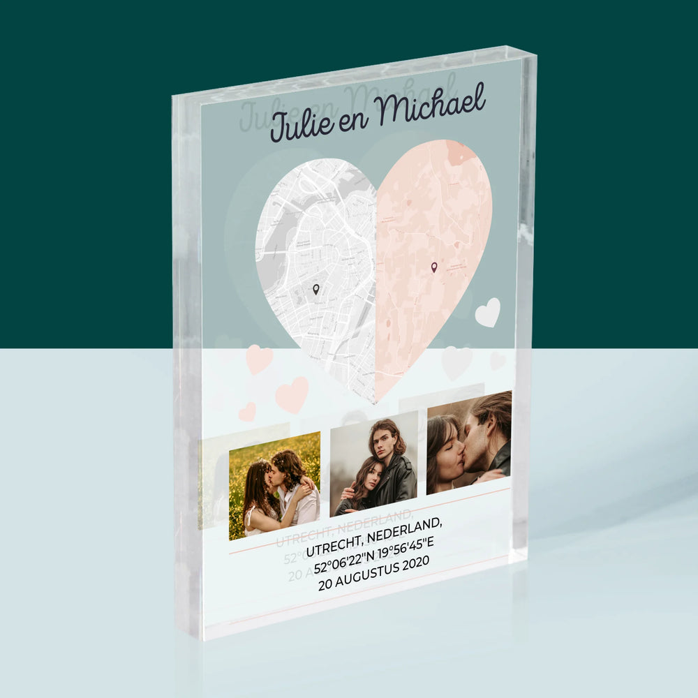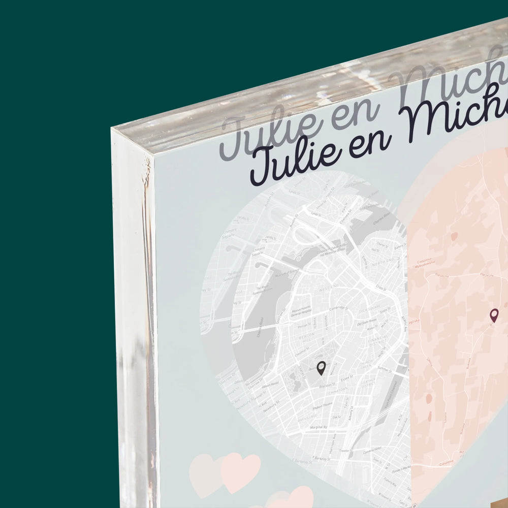 Stadsplastadsplattegrond: Twee Halve Hartjes - Acryl blok - Verticaal