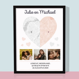 Stadsplastadsplattegrond: Twee Halve Hartjes - Afdruk op hout