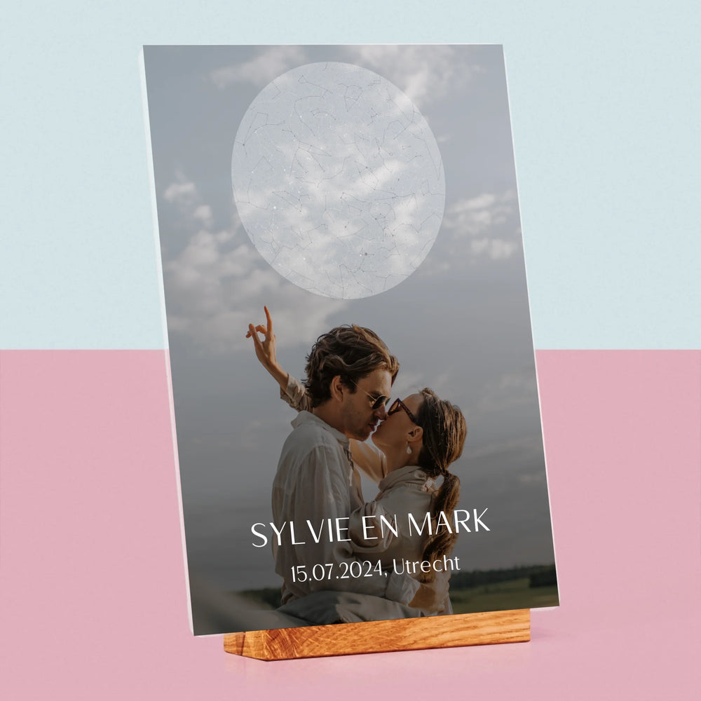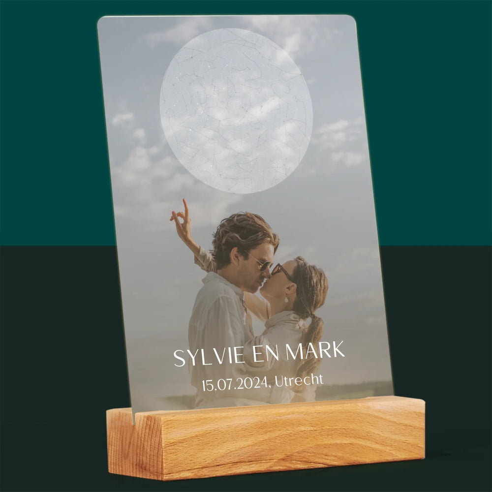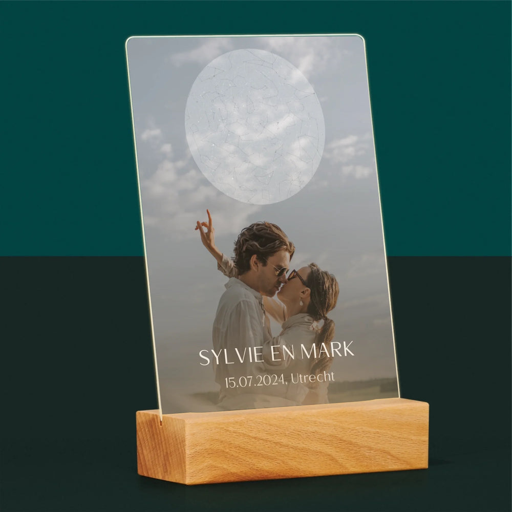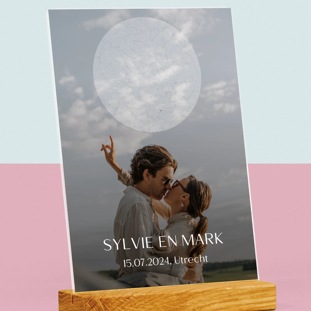 Starrenkaart: Bruiloft - Afdruk op acrylglas met LED