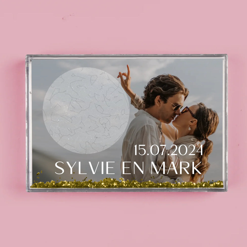 Gemaakt van transparant plastic, van binnen gevuld met water en confetti in de vorm van hartvormige bloemblaadjes!