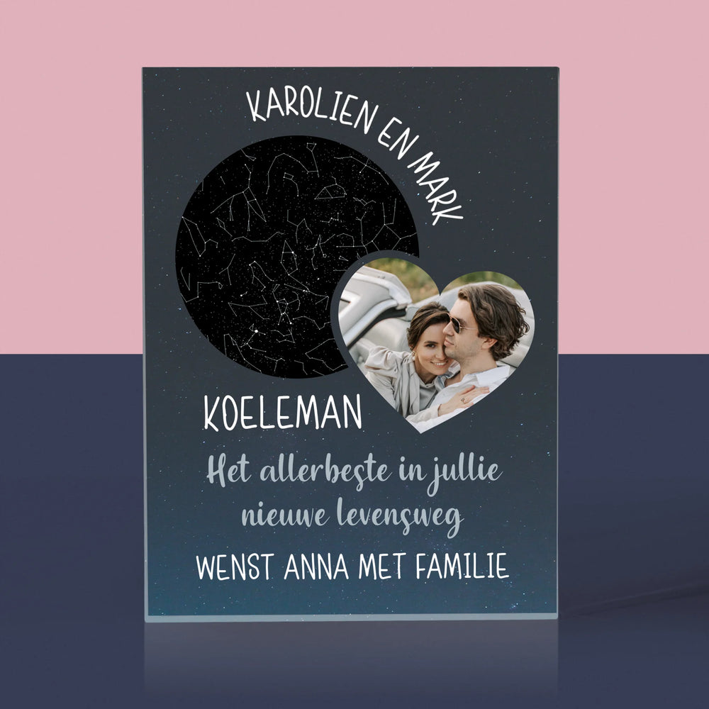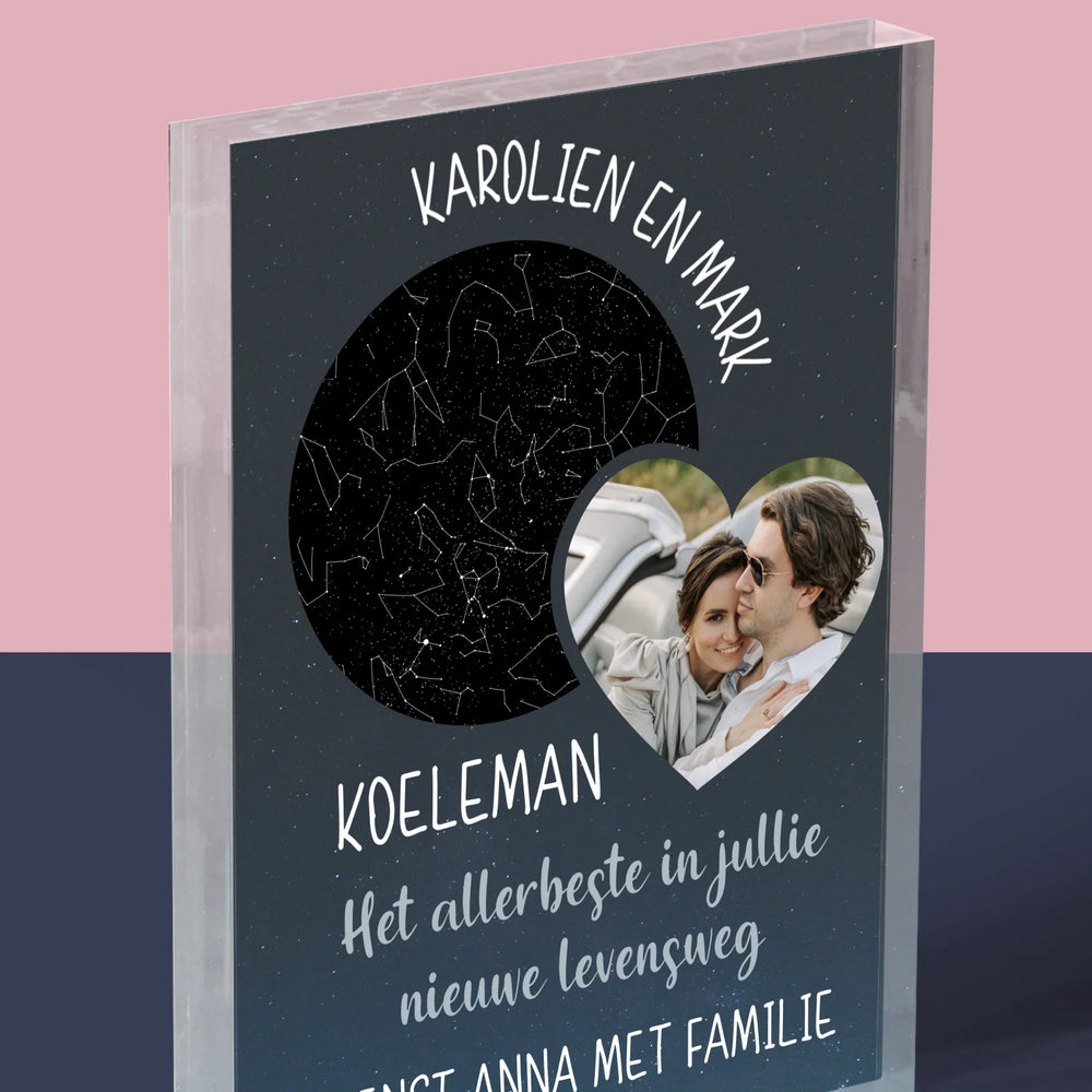 Starrenkaart: Nieuwe Levensweg, Trouw - Acryl blok - Verticaal
