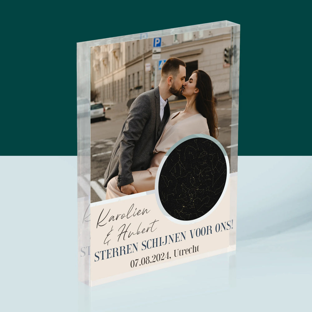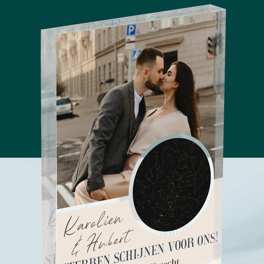 Starrenkaart: Sterren Schijnen Voor Ons - Acryl blok - Verticaal